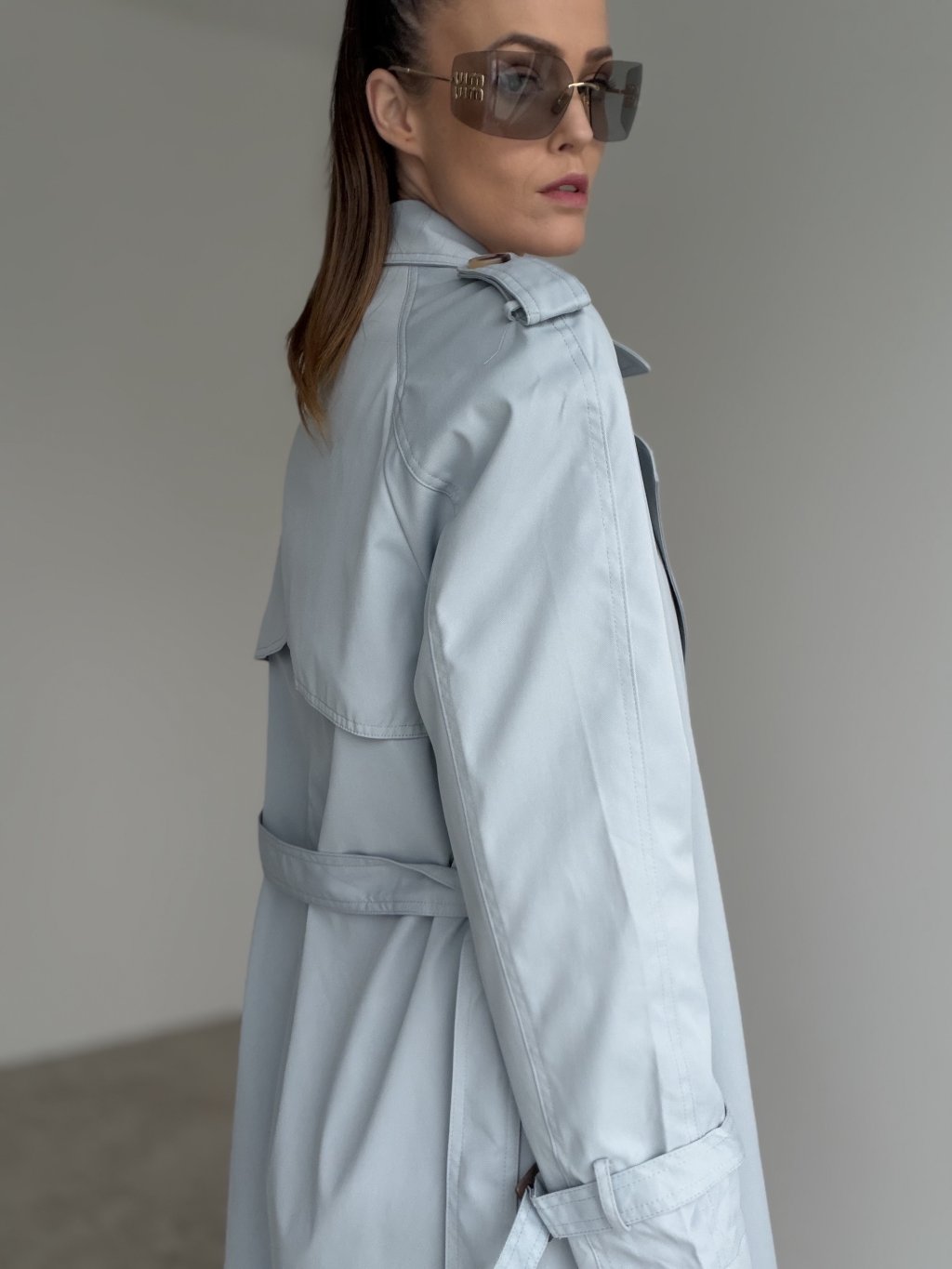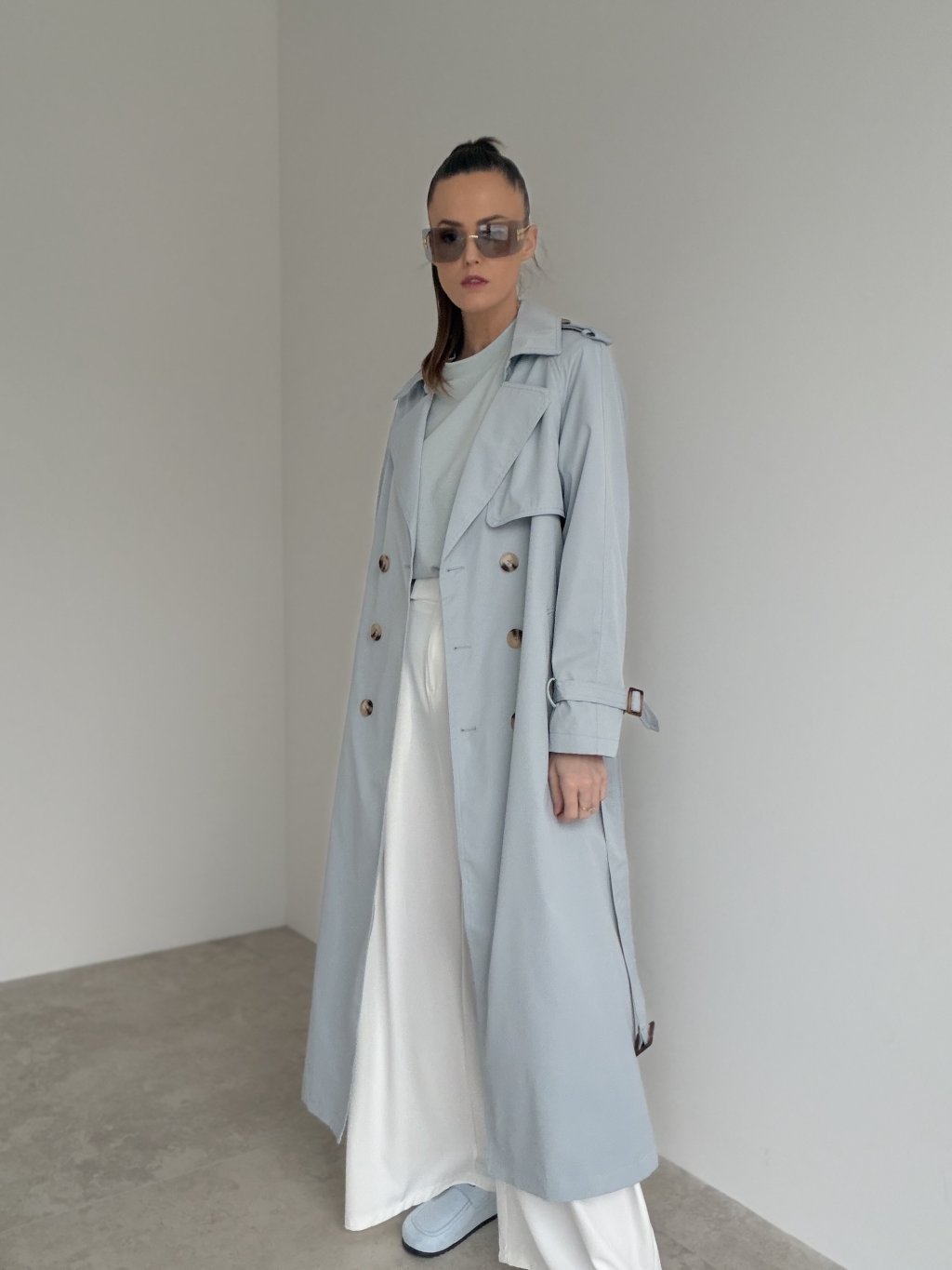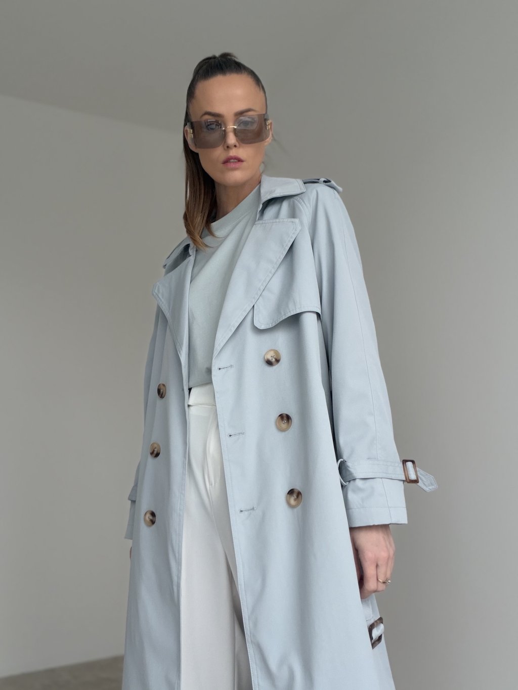 Ponadczasowy trencz o dłuższej długości, który nadaje stylizacji elegancki, dopracowany wygląd i sprawdza się w przejściowej pogodzie. Klasyczny, dwurzędowy krój z wyrazistymi klapami wygląda bardzo stylowo i łatwo łączy się zarówno z codziennymi, jak i bardziej formalnymi zestawami. Trencz ma dopracowane detale: pagony na ramionach, regulowane mankiety oraz charakterystyczną patkę z tyłu, które budują ładną sylwetkę i dodają całości charakteru. Możesz nosić go rozpiętego dla lekkiego efektu lub zarzuconego na ramiona w bardziej nowoczesnym stylu. Idealny do pracy, na miasto i w podróż.