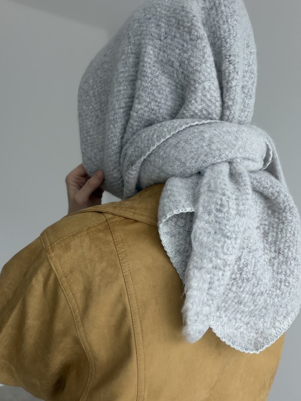 Ciepły, miękki szalik o strukturalnej fakturze. Możesz nosić go na szyi, na ramionach lub ułożyć jako stylowy kaptur.