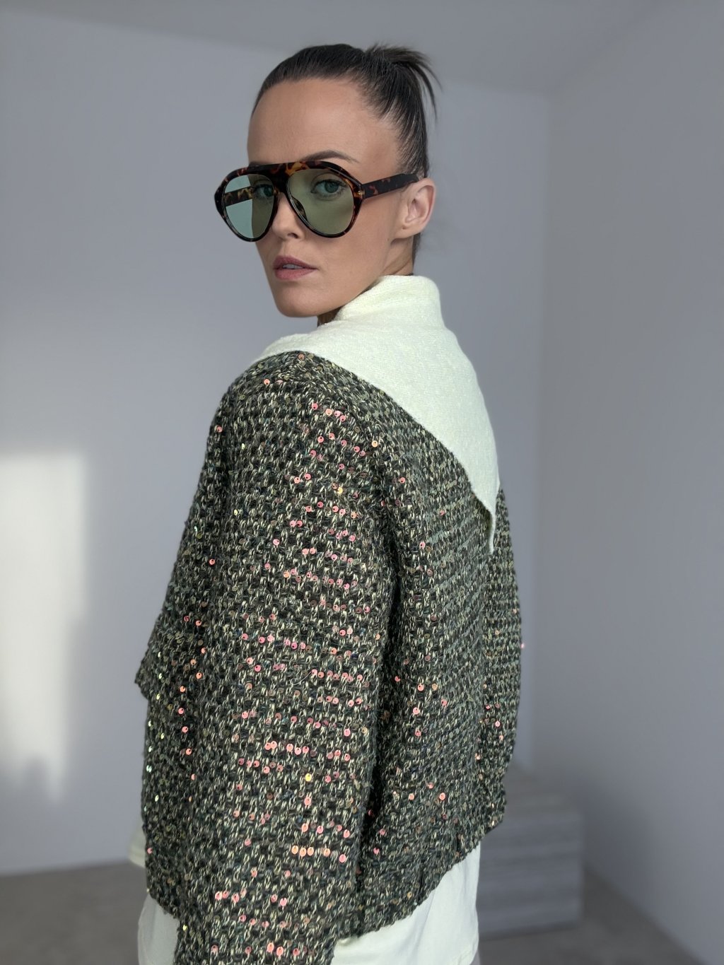 Dobrze komponuje się z prostymi fasonami i dodaje charakteru minimalistycznym zestawom. To dodatek, który wygląda subtelnie, ale robi różnicę.