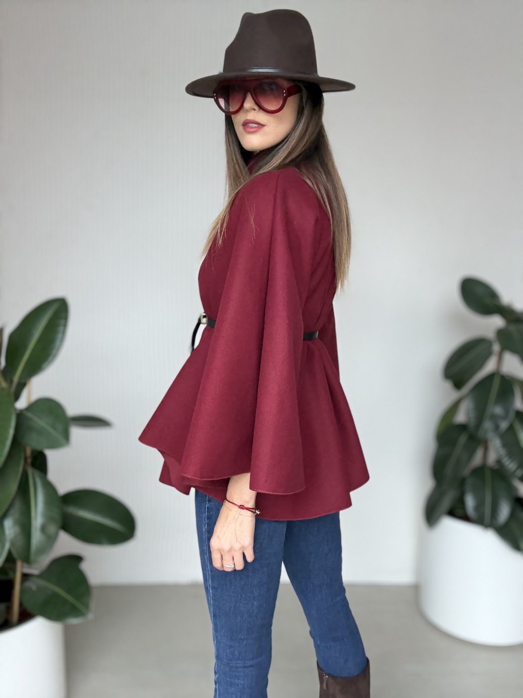 Pončo s opaskom a dekoratívnym zapínaním pre originálny a elegantný outfit.