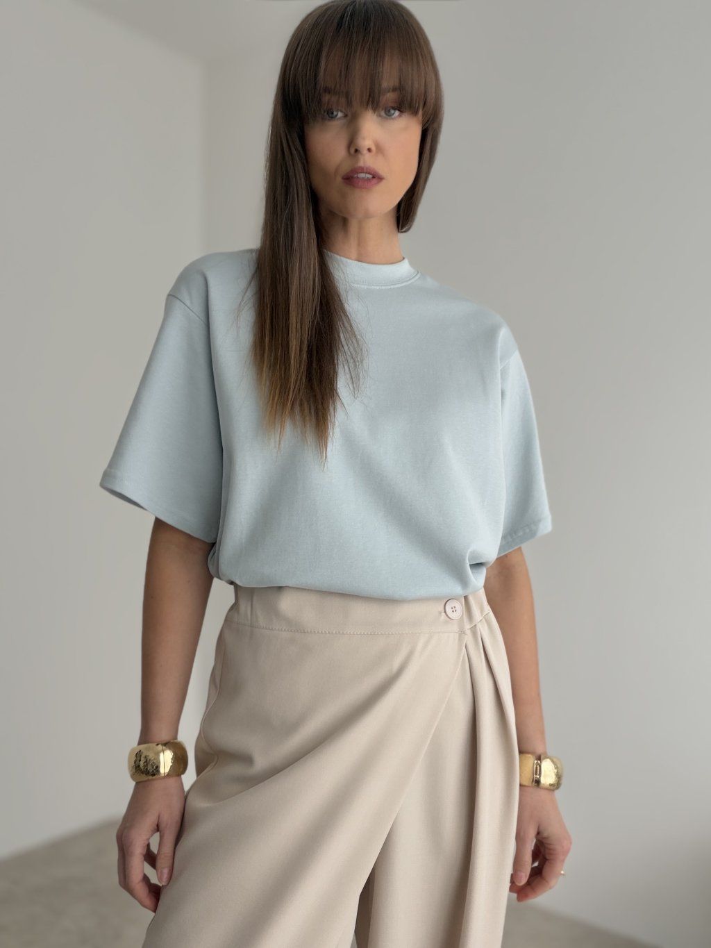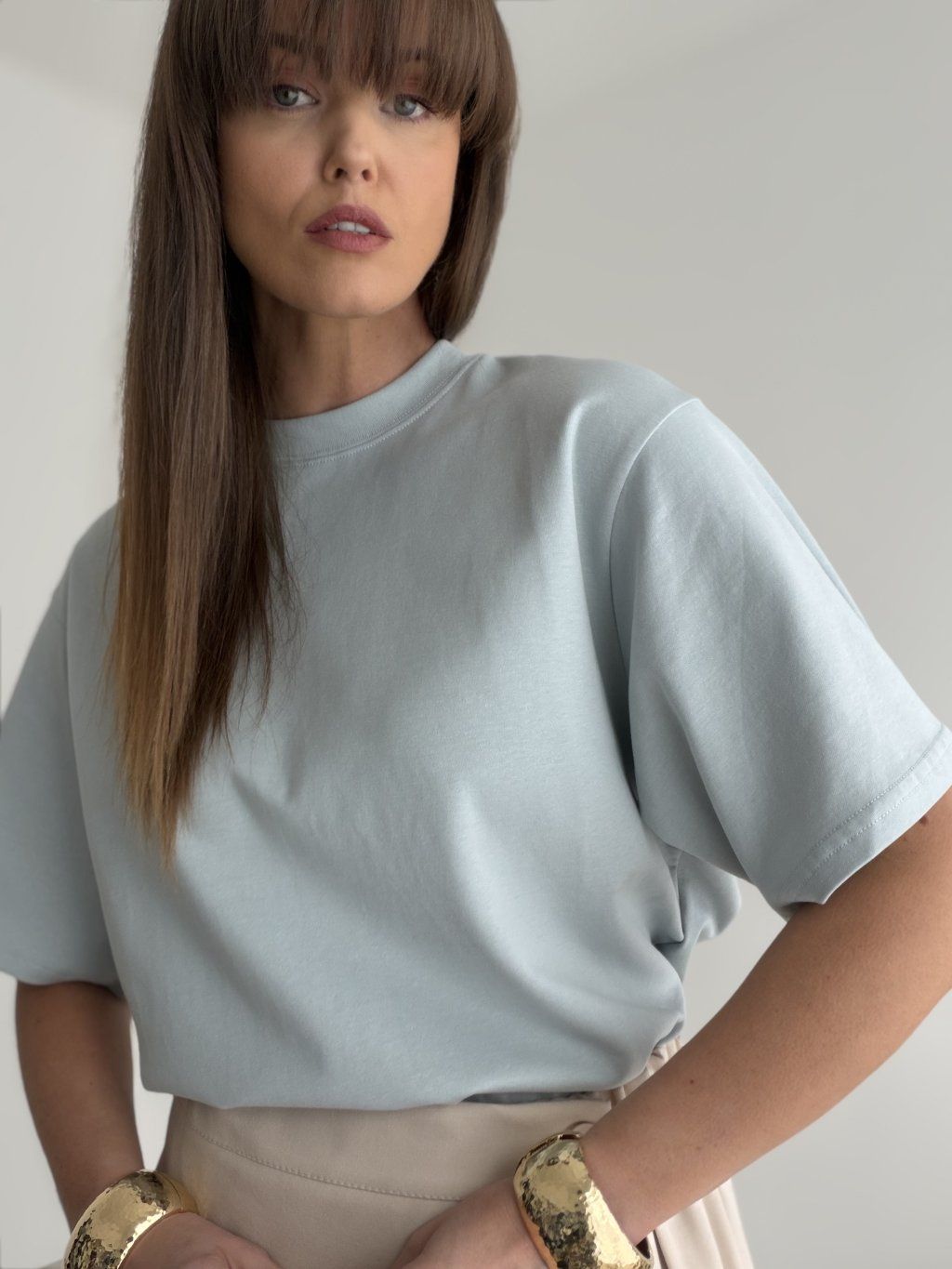 Premium bavlnené tričko je nadčasový základ šatníka, ktorý spája maximálne pohodlie, kvalitný materiál a čistý, moderný vzhľad. Má jednoduchý strih s krátkym rukávom a príjemne uvoľnenú siluetu, vďaka čomu sa veľmi dobre nosí a ľahko kombinuje s rôznymi kúskami. Bavlnený materiál je príjemný na dotyk, pohodlný počas celého dňa a ideálny na každodenné nosenie.