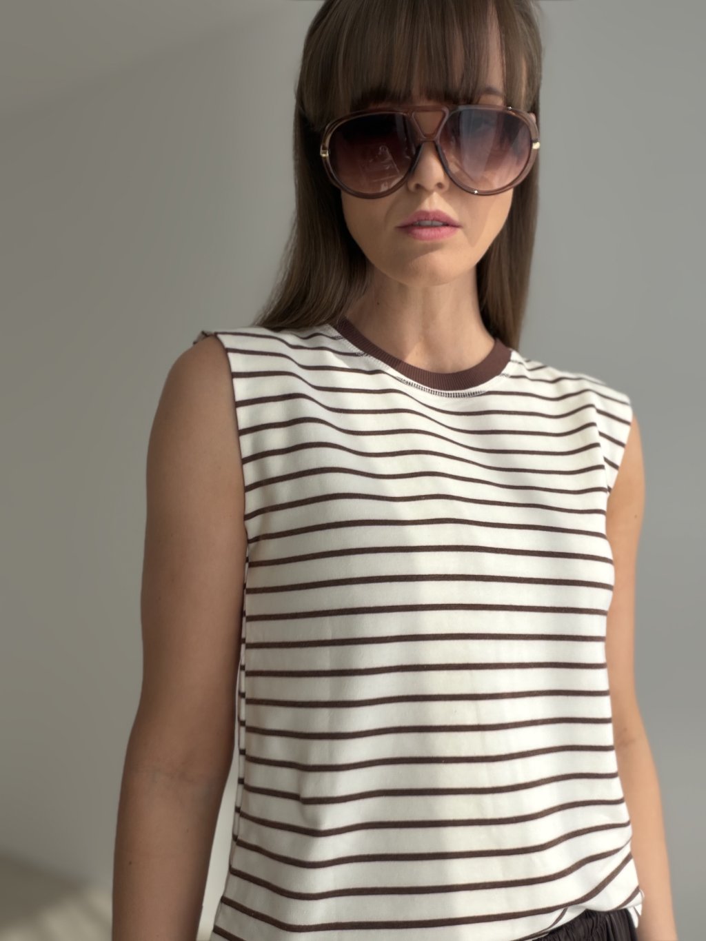 Toto tričko je nadčasový kúsok, ktorý si ľahko nájde miesto v každom šatníku. Má pohodlný strih bez rukávov, okrúhly výstrih a prúžkovaný vzor, ktorý mu dodáva svieži a ležérne elegantný vzhľad. Vďaka príjemnému materiálu sa pohodlne nosí počas celého dňa a skvelo sa kombinuje s rifľami, nohavicami aj sukňami. Je ideálnou voľbou na bežné nosenie, voľné dni aj vrstvenie pod sako či ľahkú bundu.