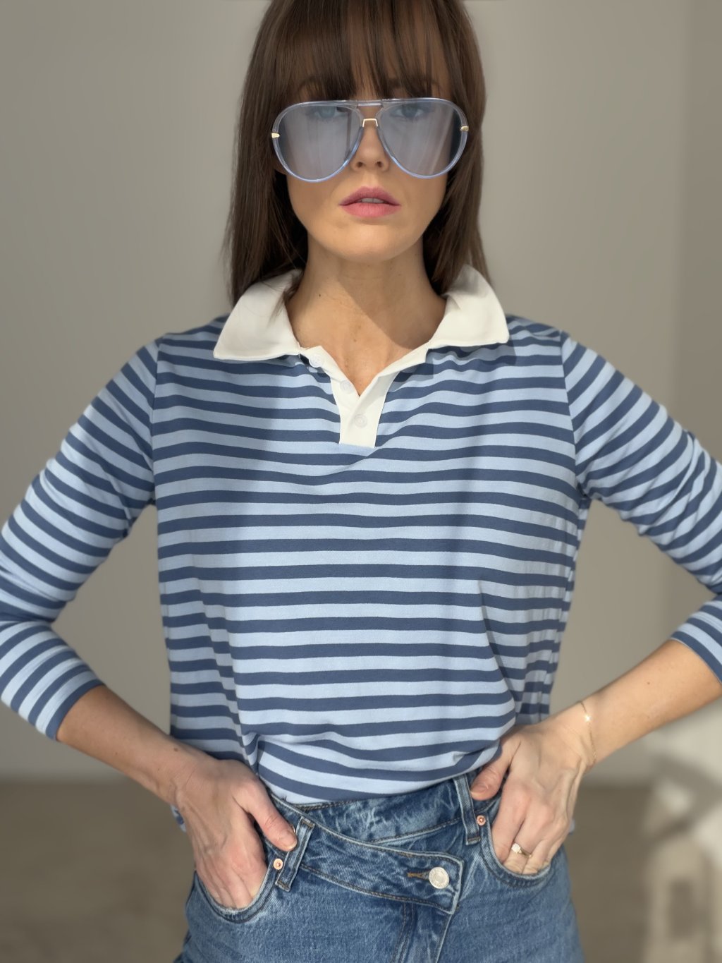 Top sa skvelo hodí k nohaviciam, rifliam aj sukni a ľahko ho zladíte do mestského, pracovného aj voľnočasového outfitu. Golierik a jemné zapínanie pri výstrihu dodávajú modelu decentný elegantný detail, ktorý zvýrazní celkový vzhľad. Tento kúsok je ideálnou voľbou pre ženy, ktoré majú rady pohodlie, čistý štýl a univerzálne kombinovanie.