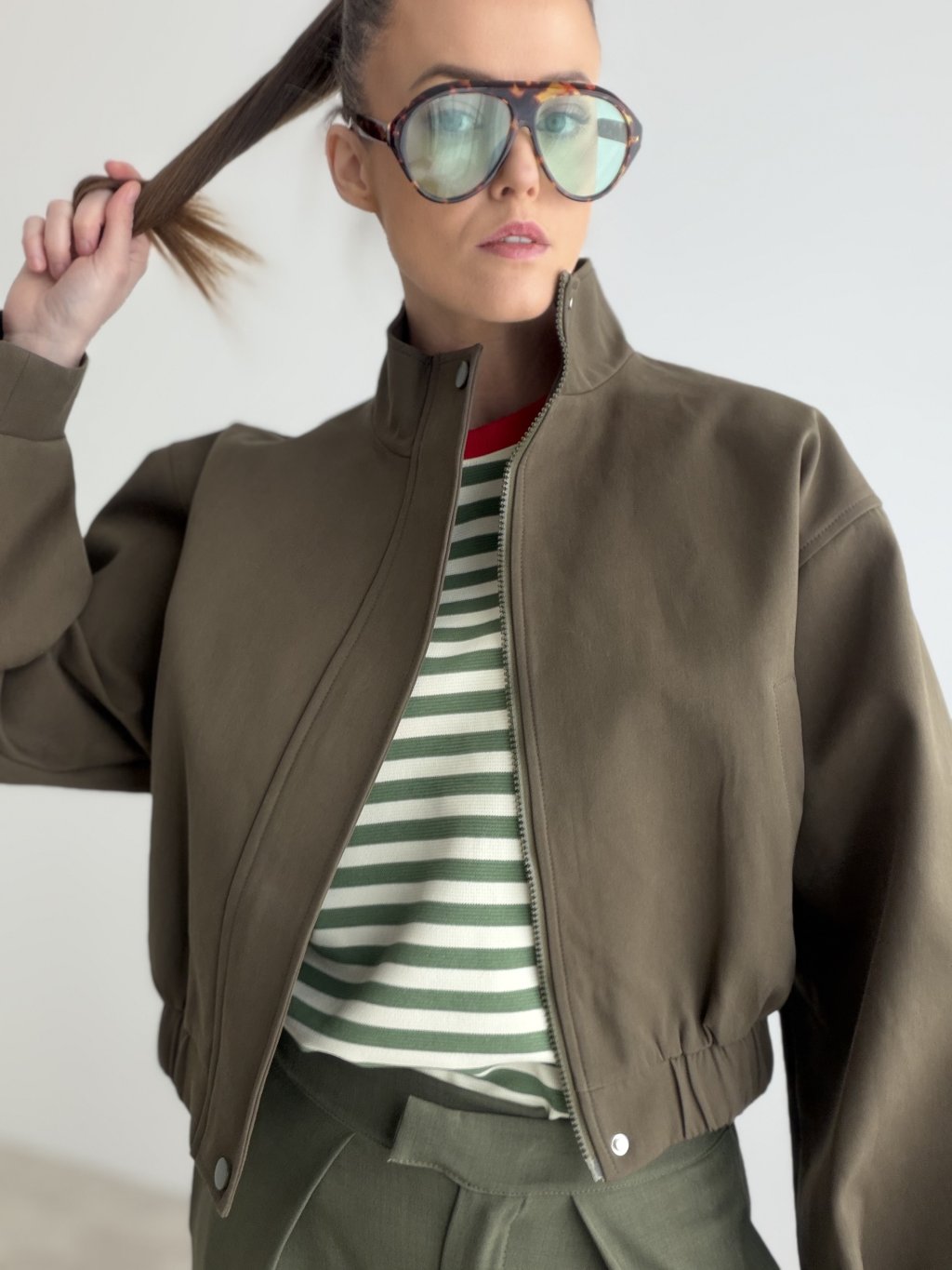 Prúžkovaný top s jemne plastickou štruktúrou je ideálny kúsok, keď chceš vyzerať upravene bez námahy. Má klasický okrúhly výstrih s rebrovaným lemom a krátke rukávy s miernym naberaním v ramenách, ktoré pekne vytvoria ženskú siluetu. Rebrované zakončenia držia tvar a dodávajú topu čistý, „premium“ vzhľad. Strih je pohodlný a ľahko sa kombinuje do ležérnych aj mestských outfitov, krásne sadne k džínsom, nohaviciam s vyšším pásom aj k sukni.
