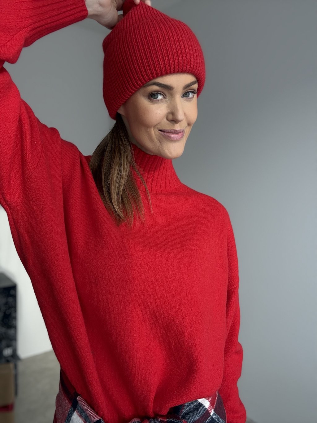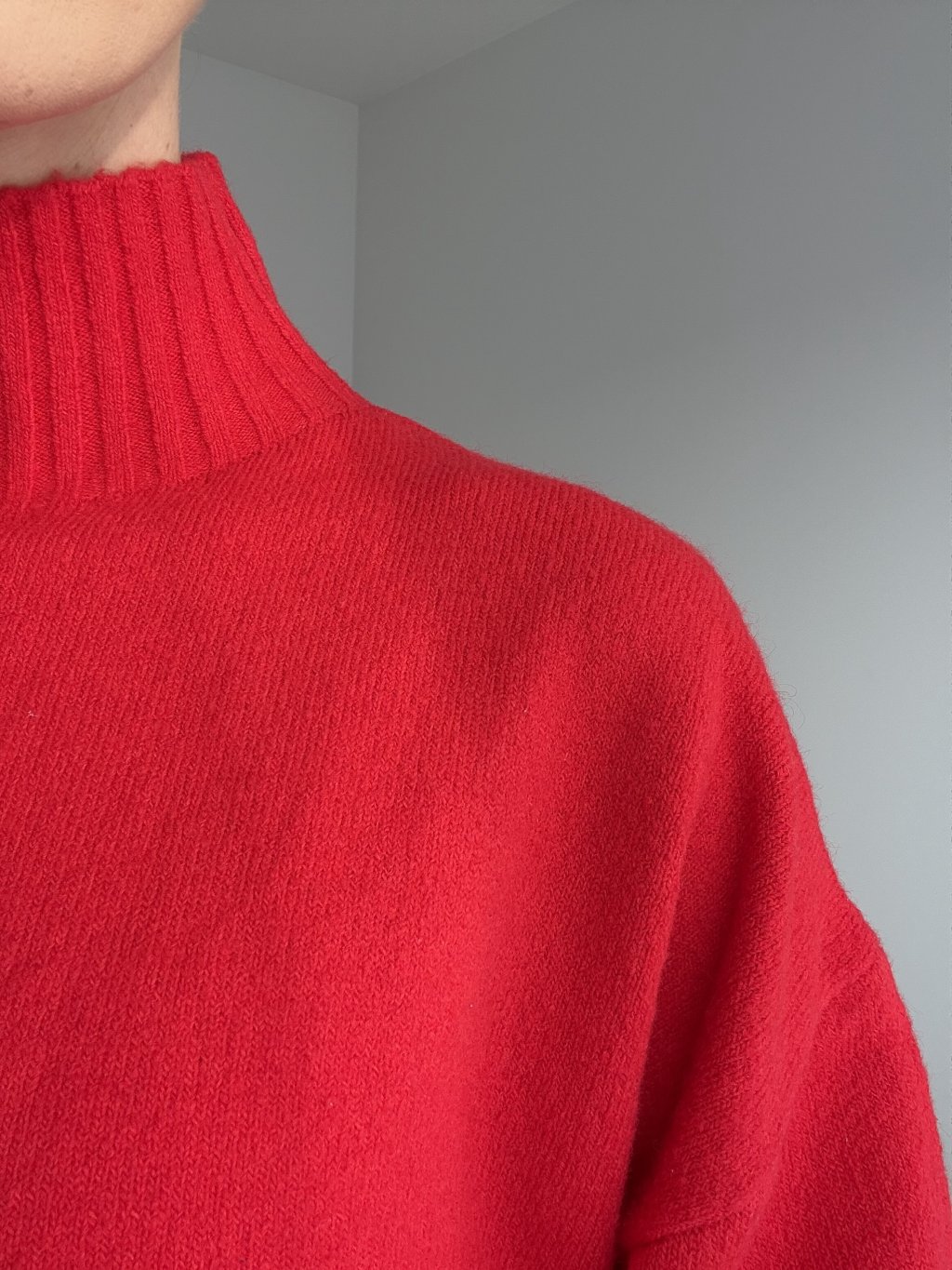 Tento pulóver je nadčasový kúsok, ktorý vyniká čistými líniami a príjemne mäkkou úpletovou štruktúrou. Má voľnejší strih s mierne spustenými ramenami, vďaka čomu pôsobí elegantne a zároveň pohodlne počas celého dňa. Vyšší rebrovaný golier príjemne chráni krk a dodáva celému modelu upravený vzhľad. Rebrované manžety a spodný lem držia tvar a umožňujú nosiť pulóver rôznymi spôsobmi – voľne, jemne zastrčený alebo preložený do pásu. Skvelo sa kombinuje s nohavicami, sukňou aj legínami a ľahko zapadne do kapsulového šatníka.