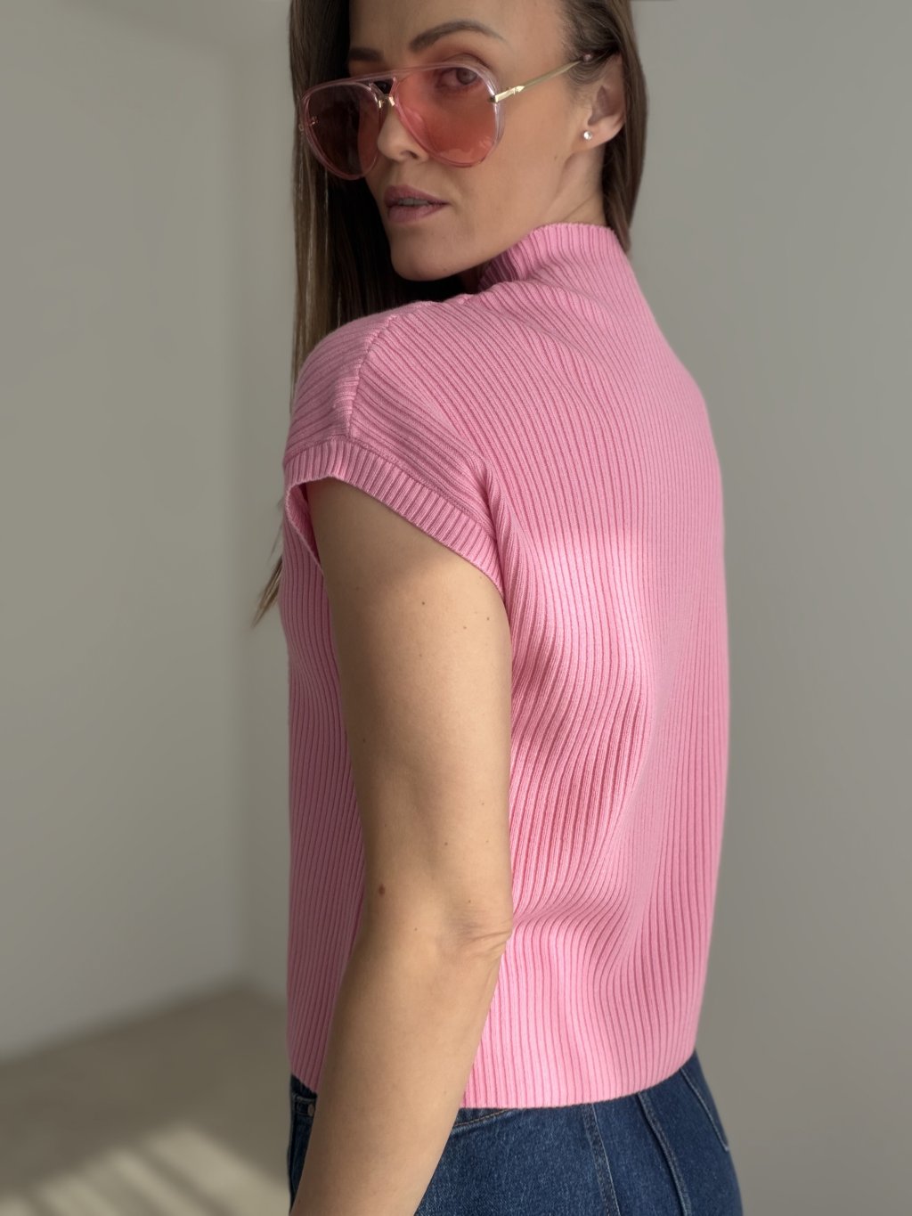 Jemný rebrovaný pulóver je elegantný a zároveň veľmi univerzálny kúsok, ktorý ľahko zapadne do každodenného aj upraveného šatníka. Zaujme čistými líniami, priliehavejším strihom a vyšším stojačikom, ktorý mu dodáva moderný a sofistikovaný vzhľad. Krátky rukáv pôsobí sviežo a žensky, zatiaľ čo decentné vrecko na prednej strane vytvára zaujímavý detail, ktorý celý model príjemne oživuje.