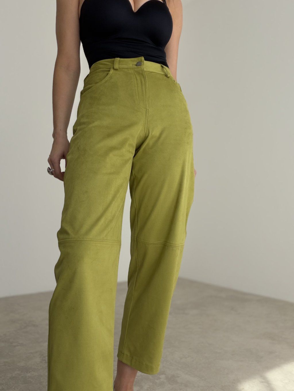 Semišové nohavice sú štýlovým kúskom, ktorý dodá outfitu moderný a zároveň elegantný vzhľad. Ich jemne štruktúrovaný povrch pôsobí sofistikovane a v kombinácii s voľnejším strihom vytvára veľmi vkusný a nadčasový efekt. Vyšší pás krásne zvýrazní siluetu a zároveň zabezpečí pohodlné nosenie počas celého dňa. Tento model je ideálny pre ženy, ktoré chcú spojiť výrazný módny prvok s komfortom a jednoduchou kombinovateľnosťou.