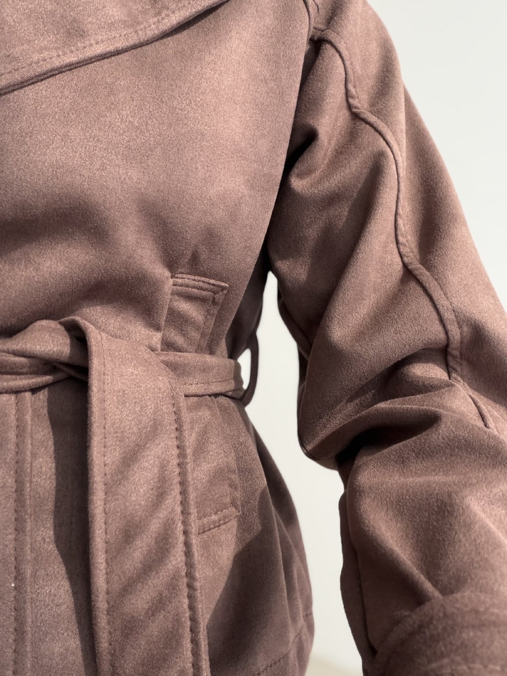 Semišové sako s viazaním v páse je elegantný a štýlový kúsok, ktorý krásne doplní každodenné aj ženské outfity. Nie je podšité, vďaka čomu je ľahké, mäkké a pohodlné na nosenie.