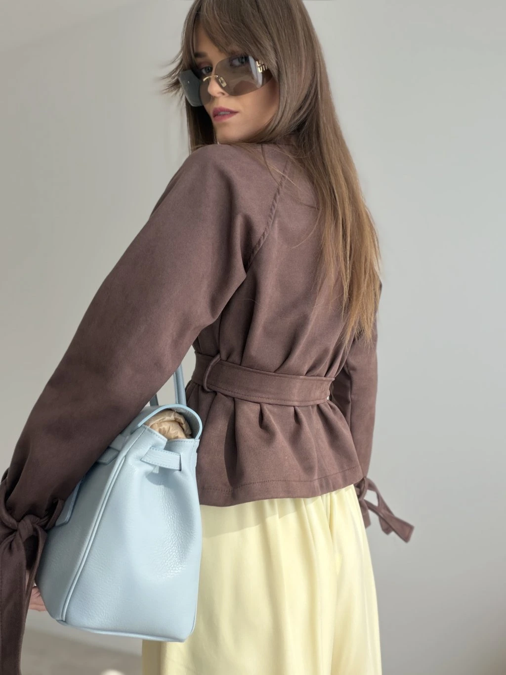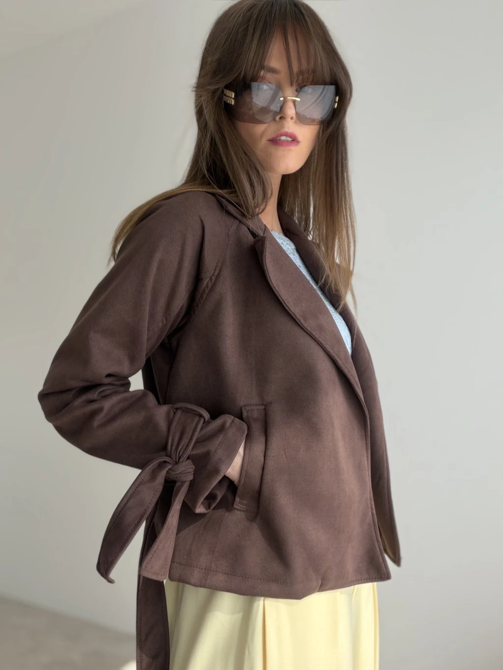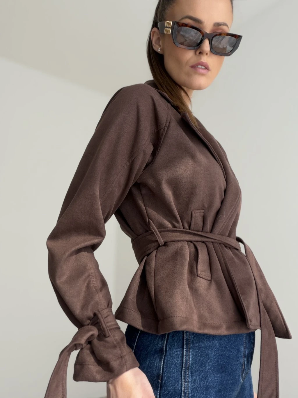 Semišové sako s viazaním v páse je elegantný a štýlový kúsok, ktorý krásne doplní každodenné aj ženské outfity. Nie je podšité, vďaka čomu je ľahké, mäkké a pohodlné na nosenie.