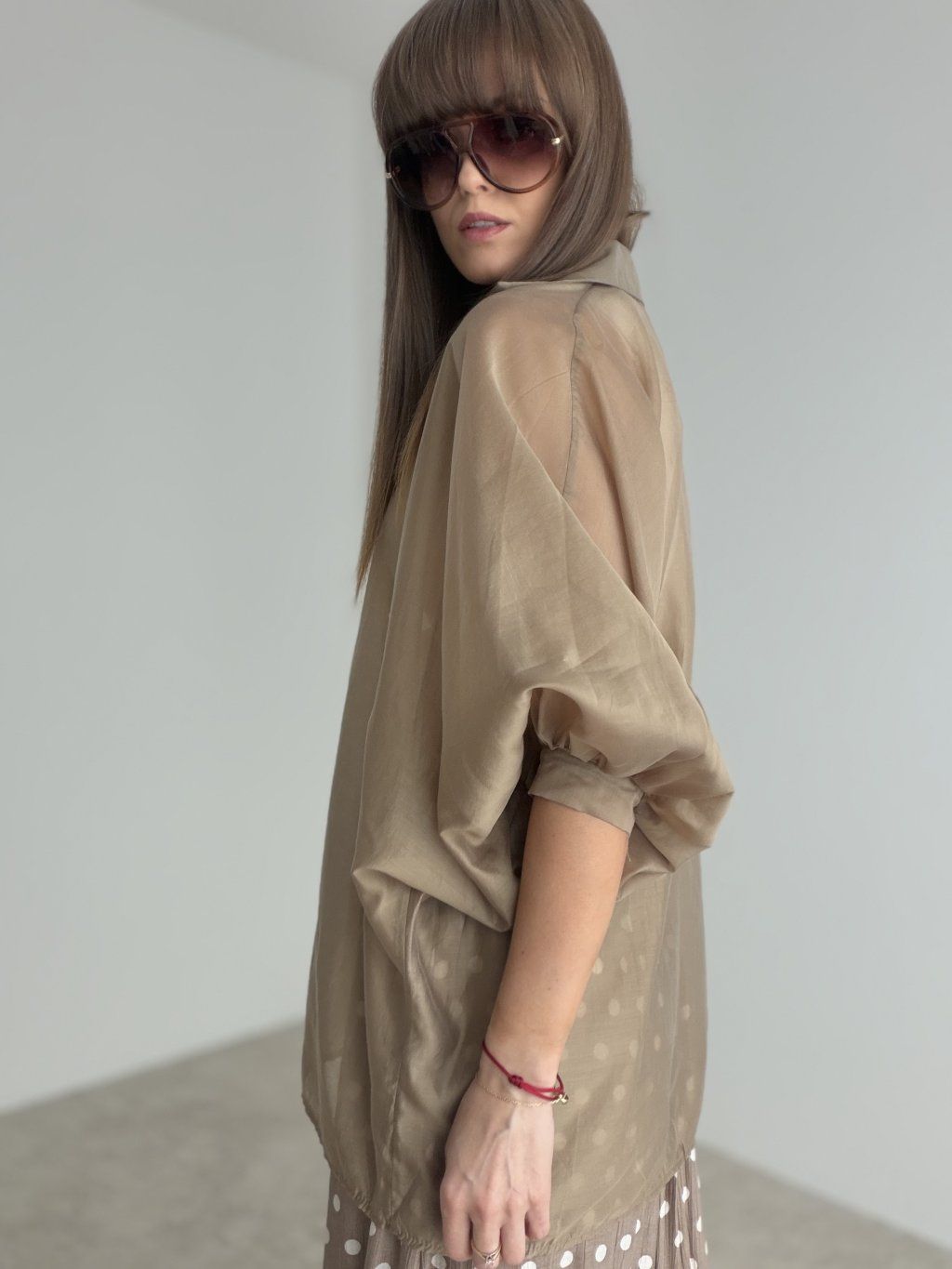 Košeľa sa krásne kombinuje s topom, body, nohavicami aj sukňou a môžeš ju nosiť voľne rozhalenú aj ako ľahkú vrchnú vrstvu. Je ideálna na každodenné nosenie, do mesta, na stretnutia aj na chvíle, keď chceš svoj outfit ozvláštniť niečím jemným, no efektným. Vďaka svojmu materiálu a strihu pôsobí veľmi moderne a dodáva stylingu vzdušnosť a eleganciu.