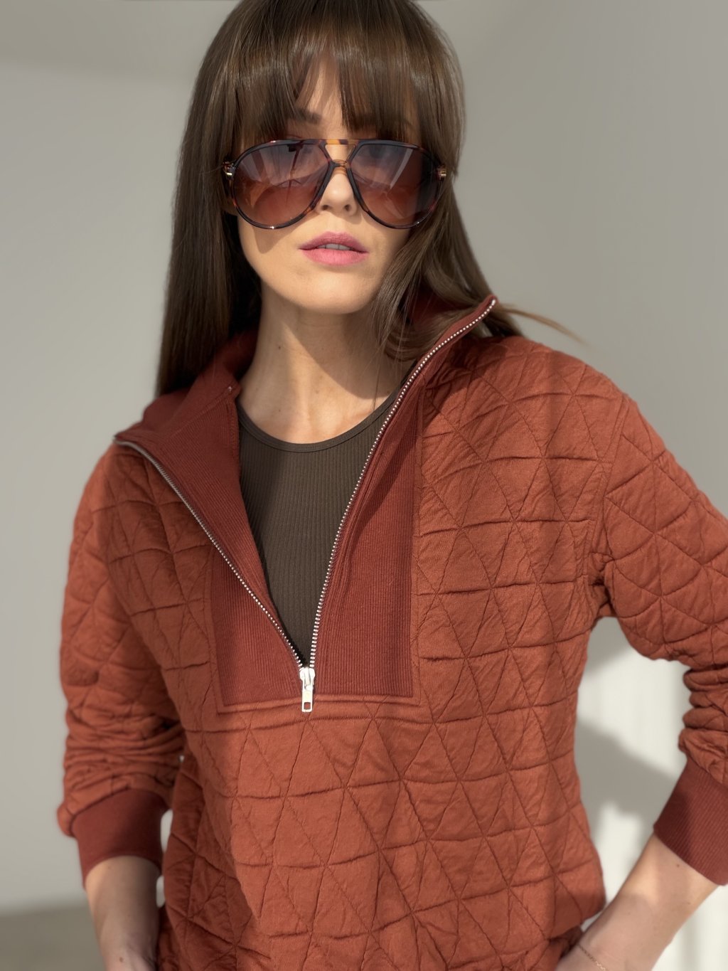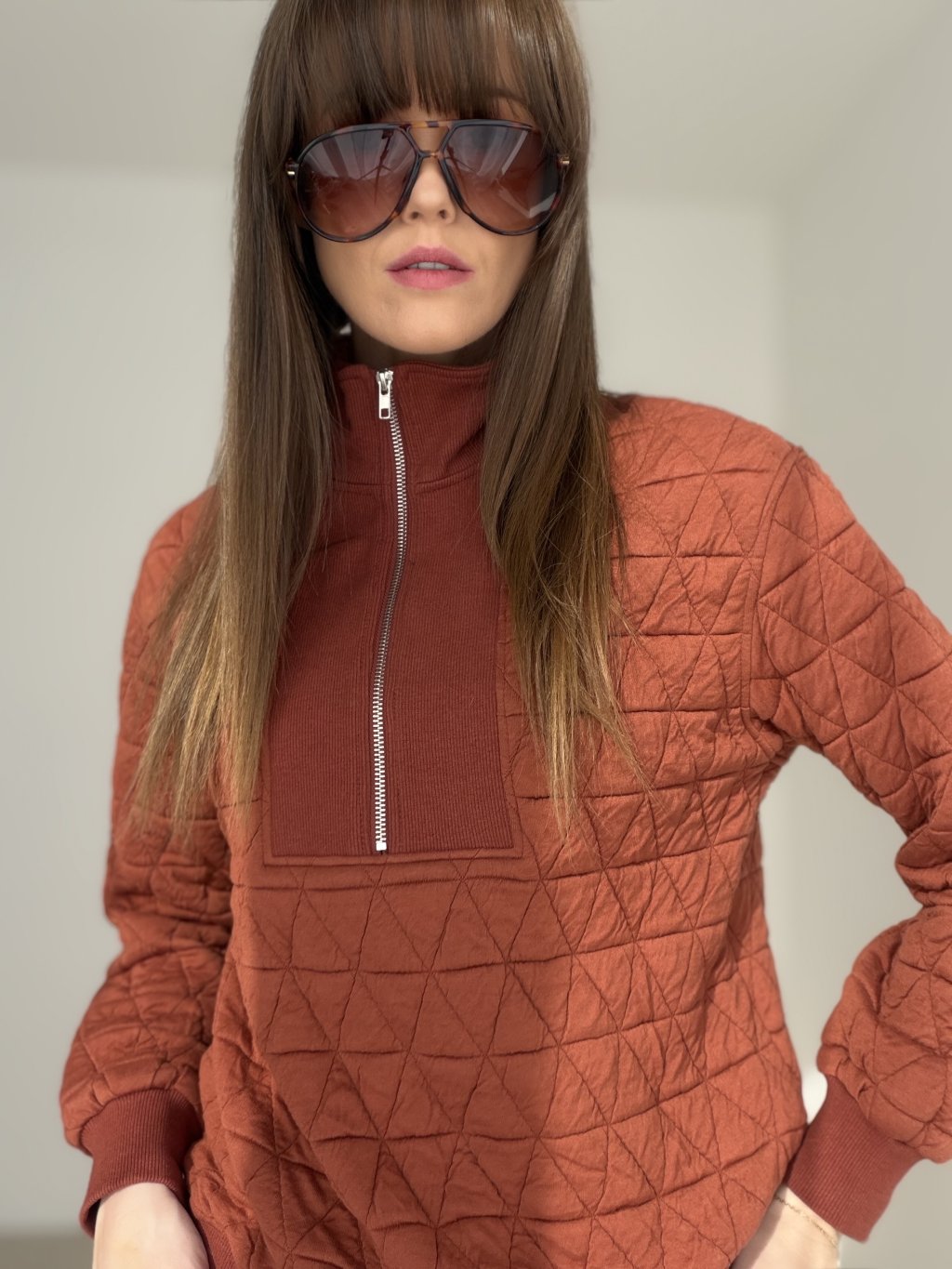 Štruktúrovaná mikina s prešívaným efektom je pohodlný, no zároveň výrazný kúsok, ktorý okamžite pozdvihne aj jednoduchý outfit. Má vyšší golier a praktické zapínanie na zips, vďaka čomu si vieš upraviť výstrih podľa potreby a mikina sa príjemne nosí počas celého dňa. Voľnejší strih poskytuje komfort pri pohybe a zároveň pôsobí upravene. Rukávy aj spodný lem sú zakončené pružným patentom, ktorý drží tvar a pomáha mikine pekne sadnúť. Skvelo sa kombinuje s legínami, džínsami aj elegantnejšími nohavicami a využiješ ju na bežné dni, cestovanie aj víkendové nosenie.