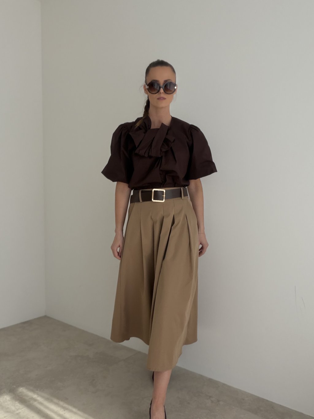Elegantná sukňa s opaskom je nadčasový kúsok, ktorý v sebe spája ženskosť, pohodlie a upravený vzhľad. Tento model zaujme krásne splývavým strihom, výraznejším objemom a elegantným opaskom, ktorý celému outfitu dodáva sofistikovaný akcent. V páse je navyše pohodlná guma, vďaka ktorej sa sukňa príjemne prispôsobí postave a dobre sa nosí počas celého dňa.