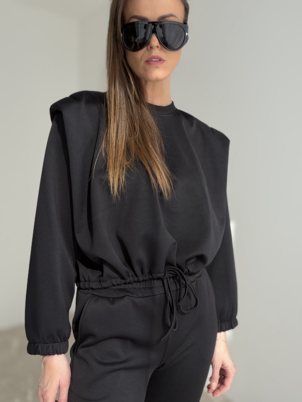Táto tepláková súprava je ideálnou voľbou, keď chceš pohodlie, ale zároveň upravený a moderný vzhľad. Vrchný diel má čistú líniu s výraznejším ramenom, ktoré pekne formuje siluetu, a v páse je doplnený sťahovaním, vďaka ktorému si vieš prispôsobiť tvar podľa postavy. Príjemný materiál sa nosí komfortne počas celého dňa a hodí sa na bežné nosenie aj cestovanie. Nohavice majú pohodlný strih s vreckami a zakončením pri členkoch, takže pôsobia športovo, no stále veľmi štýlovo. Set vieš nosiť spolu ako kompletný outfit alebo ho jednoducho kombinovať samostatne s ďalšími kúskami zo šatníka.