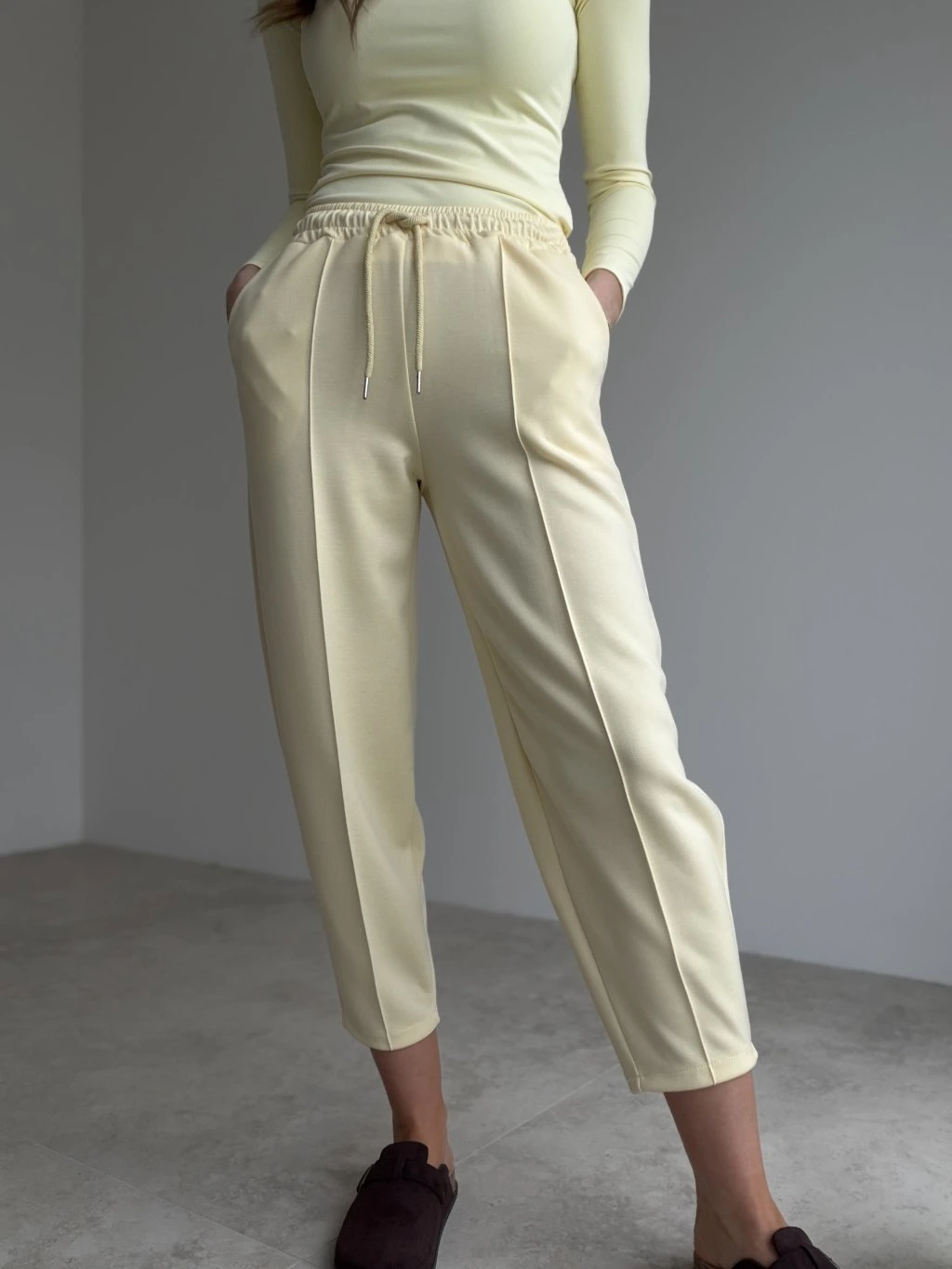 Pohodlné tepláky s elastickým pásom a šnúrkou, voľnejším strihom a dĺžkou nad členky. Ideálne na každý deň aj na cestovanie.