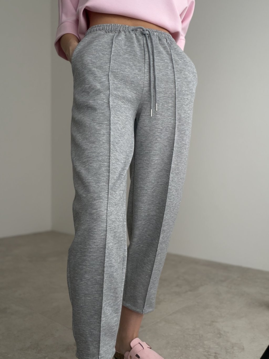 Pohodlné tepláky s čistým, elegantným vzhľadom sú presne ten kúsok, ktorý využiješ na bežný deň aj na cestovanie. Majú pružný pás so šnúrkou na stiahnutie, takže sa pekne prispôsobia postave a držia tam, kde majú. Strih je voľnejší, no vďaka prepracovaným líniám pôsobí upravene a moderne – nie „domácky“. Dĺžka nad členky a jemne zúžené nohavice robia peknú siluetu a skvele sa kombinujú s teniskami aj s mestskou obuvou.