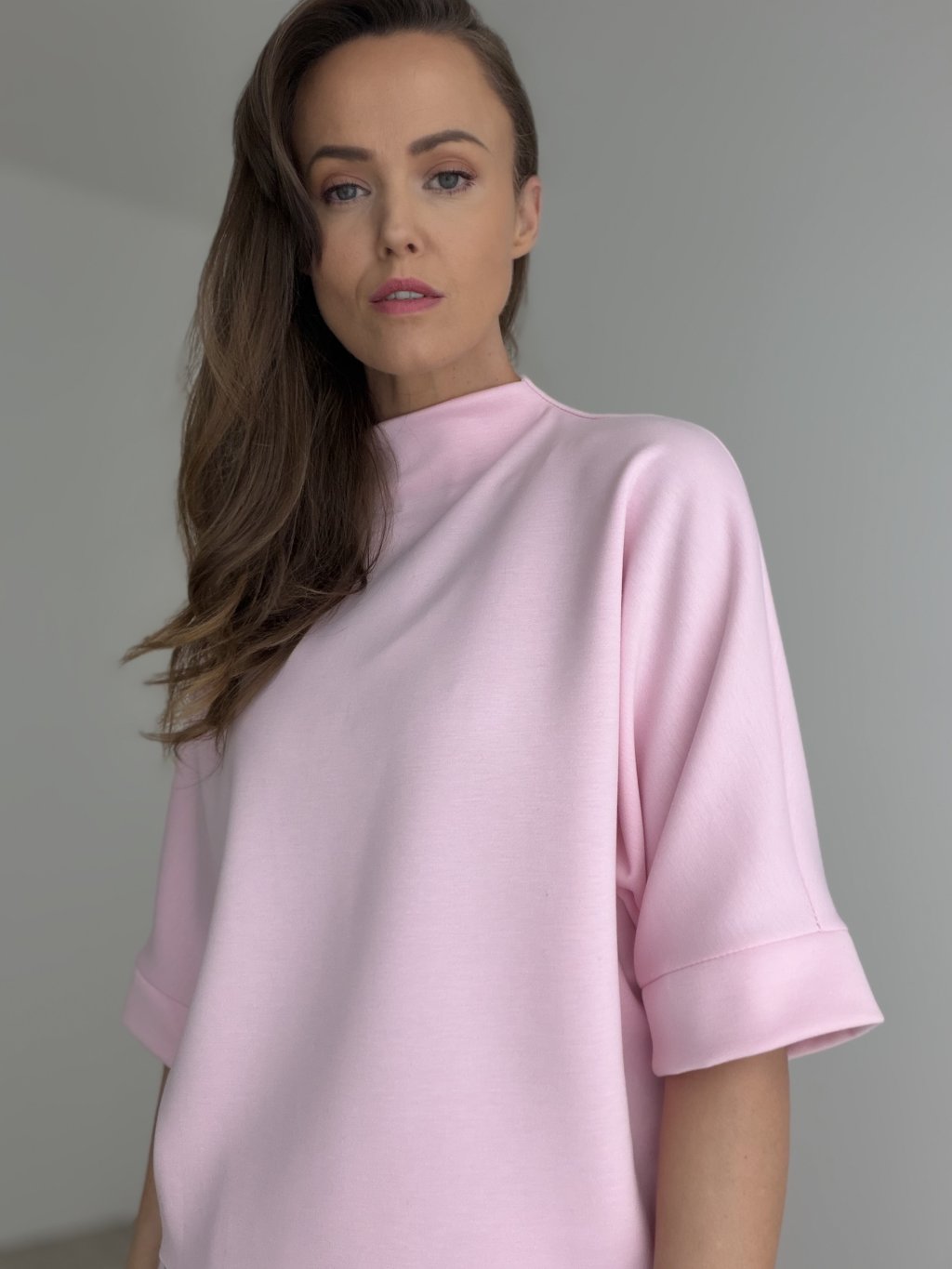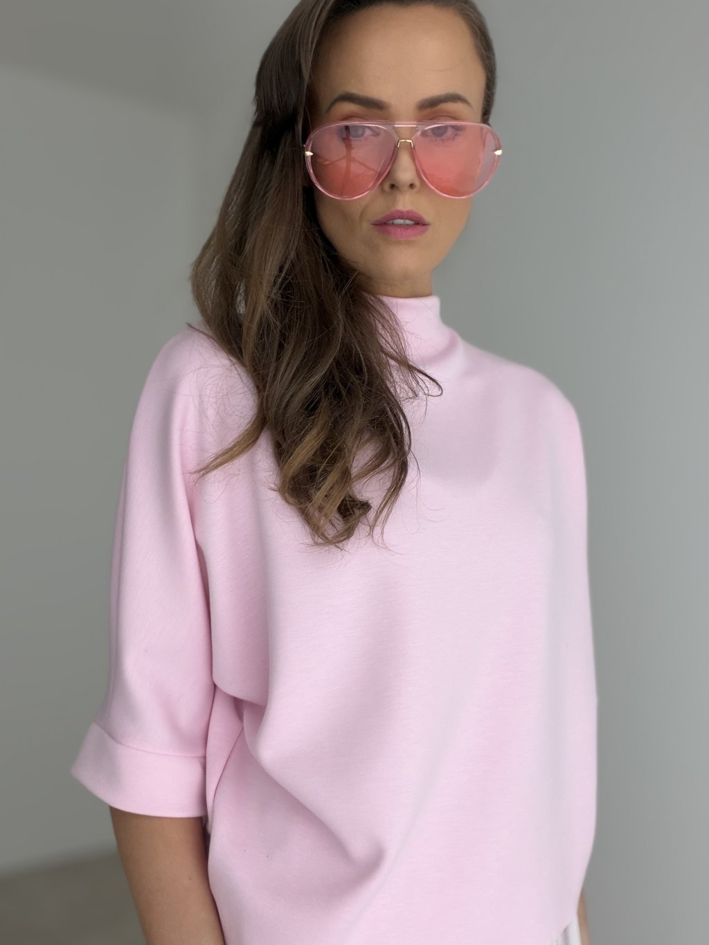 Top so stojačikom je nadčasový kúsok, ktorý pôsobí elegantne a zároveň veľmi moderne. Má voľnejší, pohodlný strih s jemne spadnutým ramenom a širšími rukávmi s manžetovým zakončením, vďaka čomu vyzerá upravene aj bez výrazných doplnkov. Stoiačik pekne drží tvar a dodá outfitu čistú líniu, takže top ľahko zladíš k širokým nohaviciam, sukni aj pod sako. Je ideálny na bežný deň, do práce aj na príležitosti, keď chceš pôsobiť minimalisticky, ale šik. Jemný a príjemný material, náchylný na zatiahnutie.