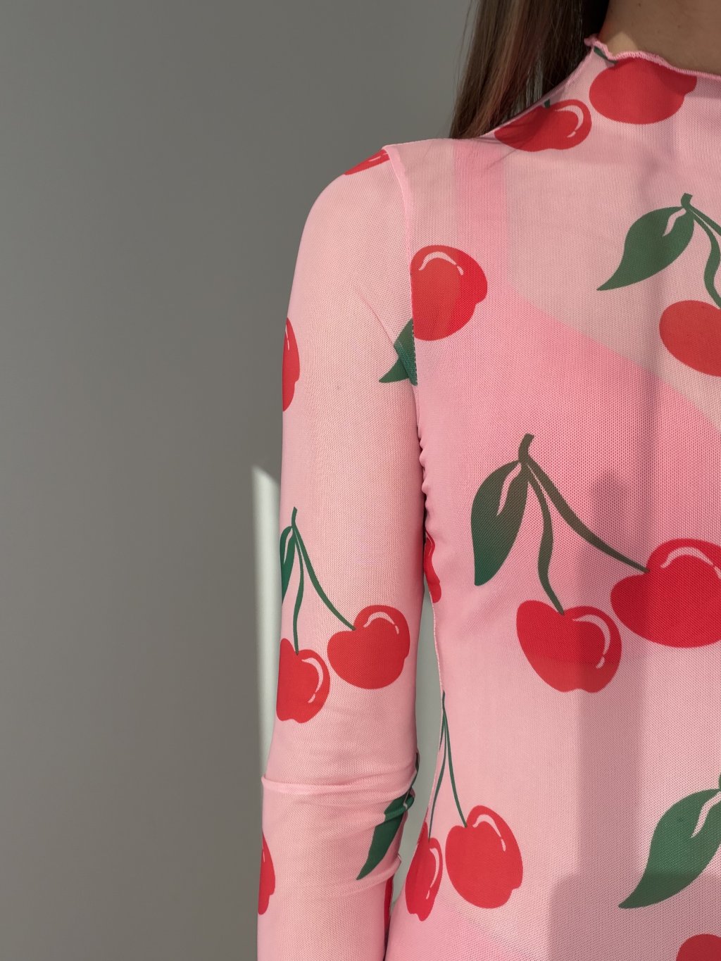 Priesvitný sieťovaný top s dlhým rukávom a stojáčikom v priliehavom strihu. Ideálny na vrstvenie aj ako výrazný kúsok do outfitov.