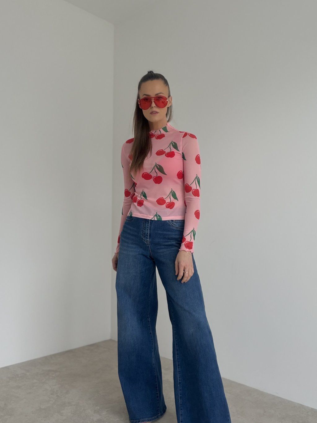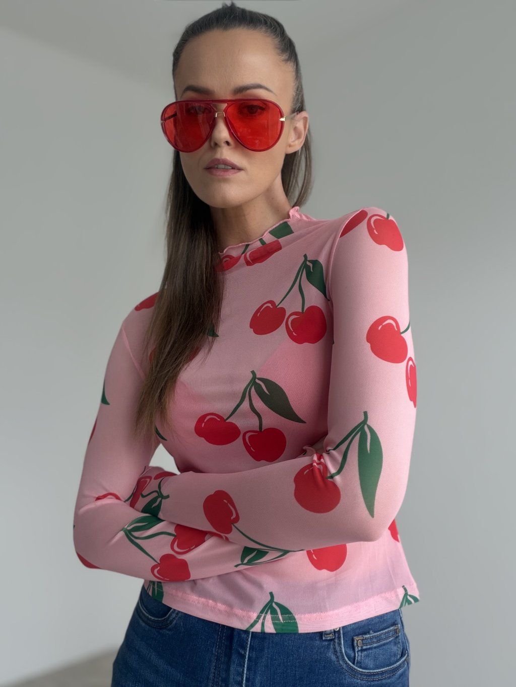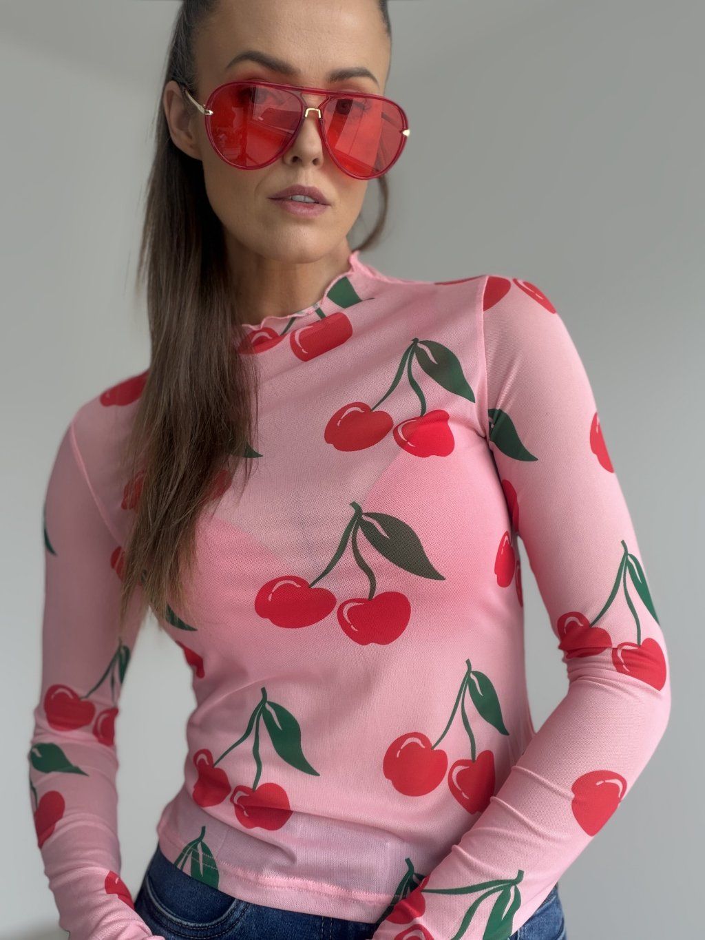 Priesvitný sieťovaný top s dlhým rukávom a stojáčikom v priliehavom strihu. Ideálny na vrstvenie aj ako výrazný kúsok do outfitov.