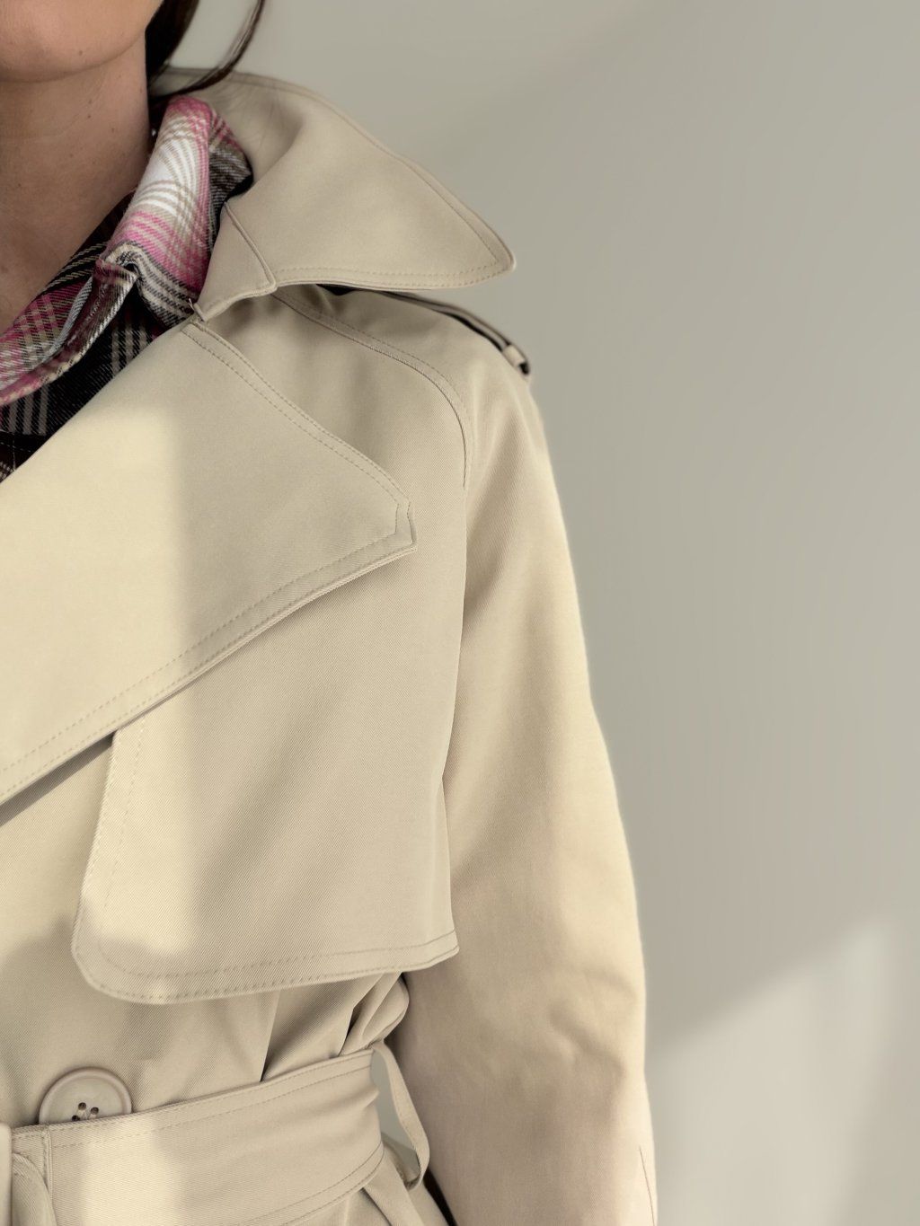 Na výraznejšiu siluetu zafixuj manžety a uprav golier, trenčkot bude pôsobiť ešte štruktúrovanejšie.