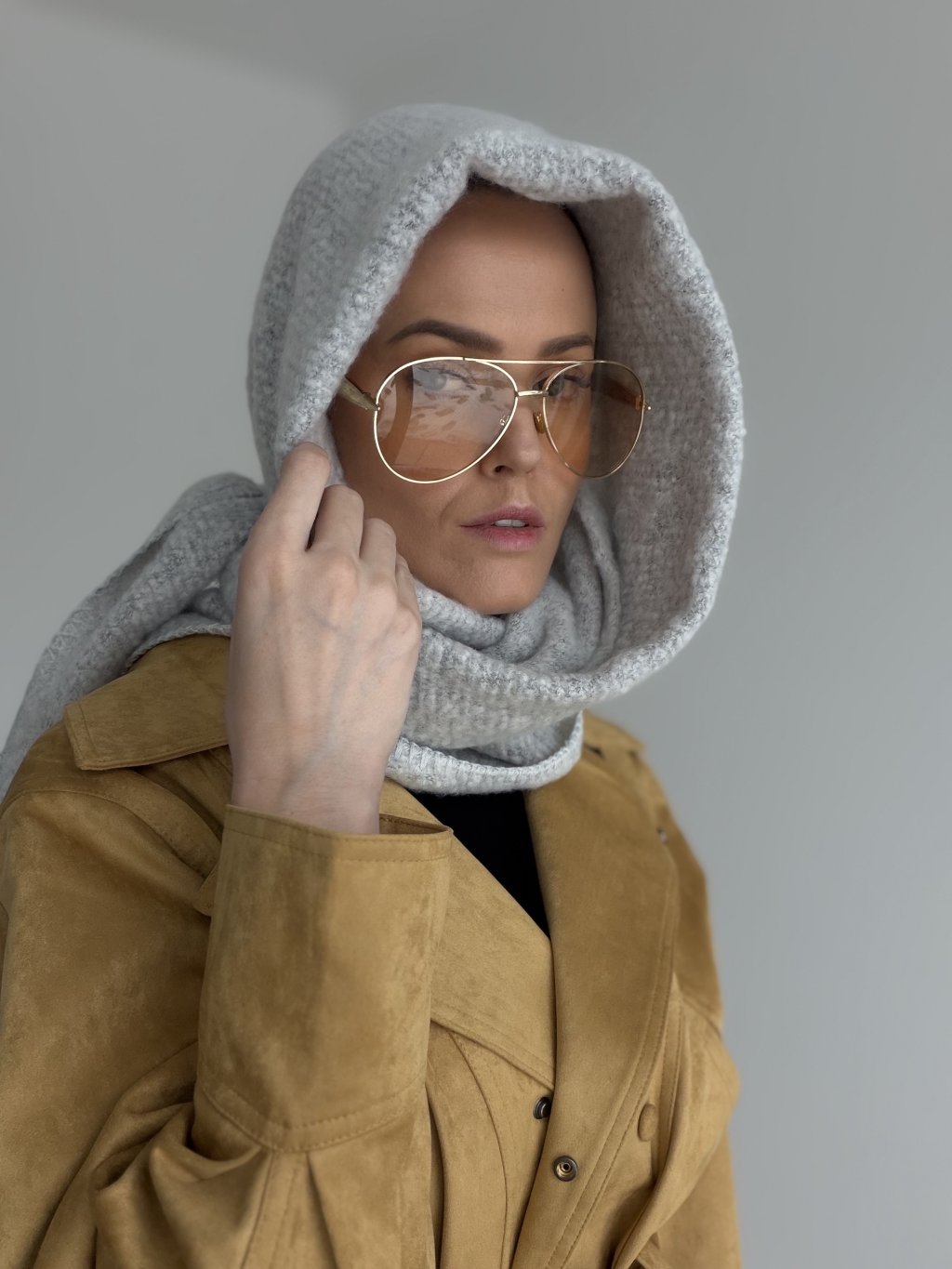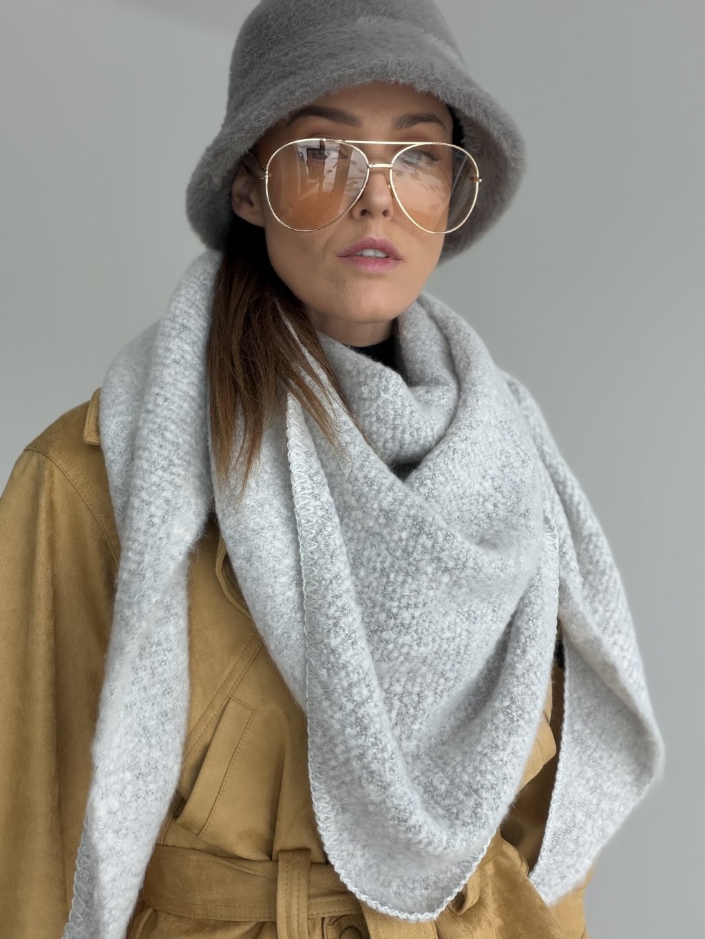 Hrejivá šatka s mäkkým, štruktúrovaným povrchom. Dá sa nosiť okolo krku, cez ramená aj ako štýlová kapucňa k vrstveným outfitom.