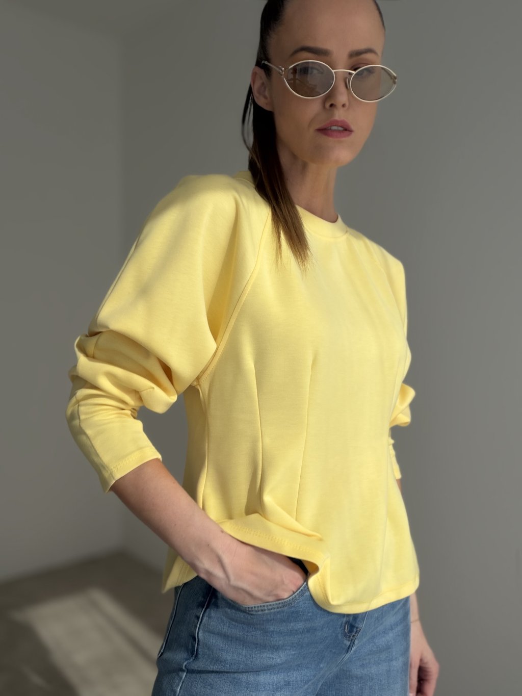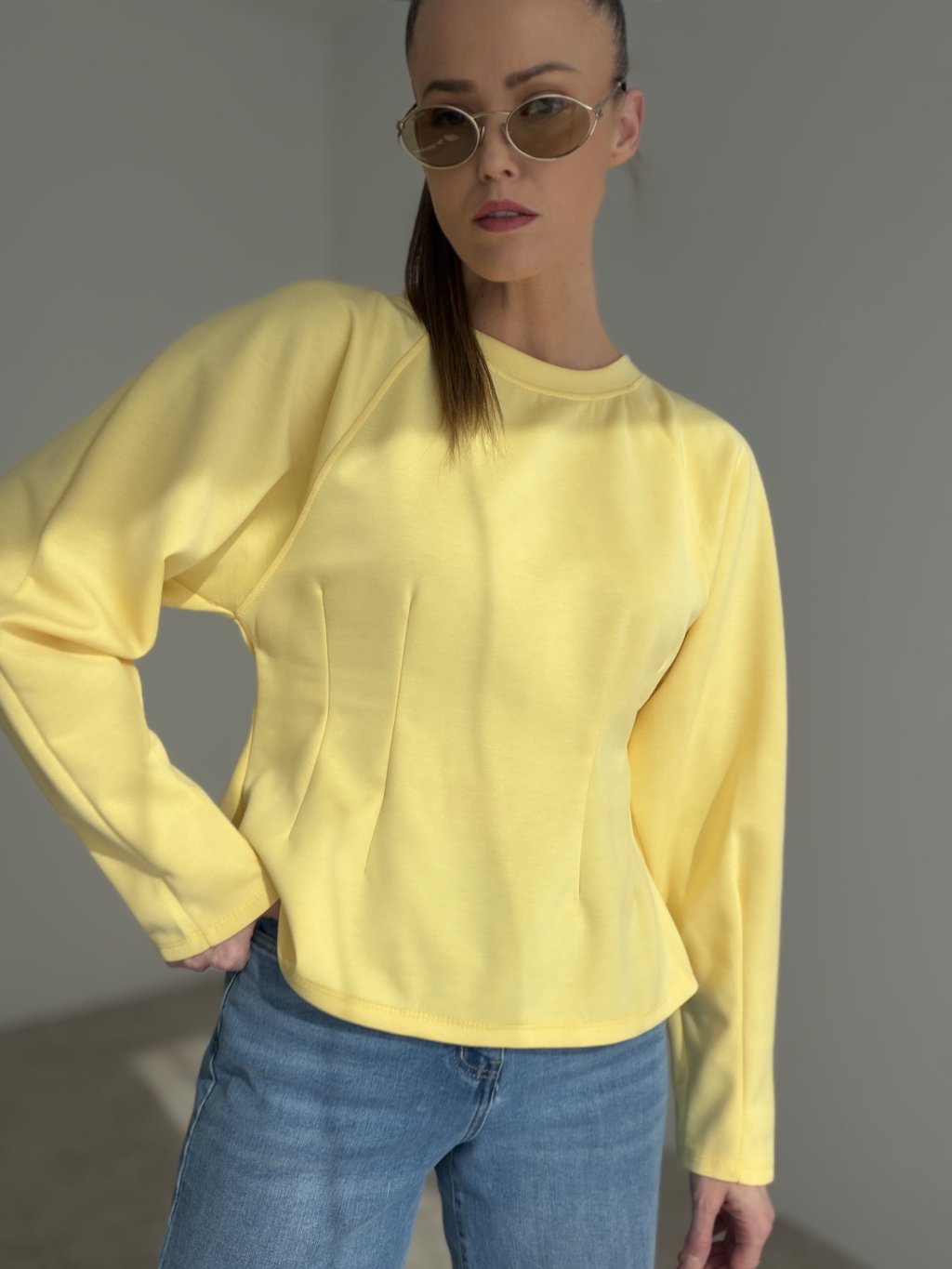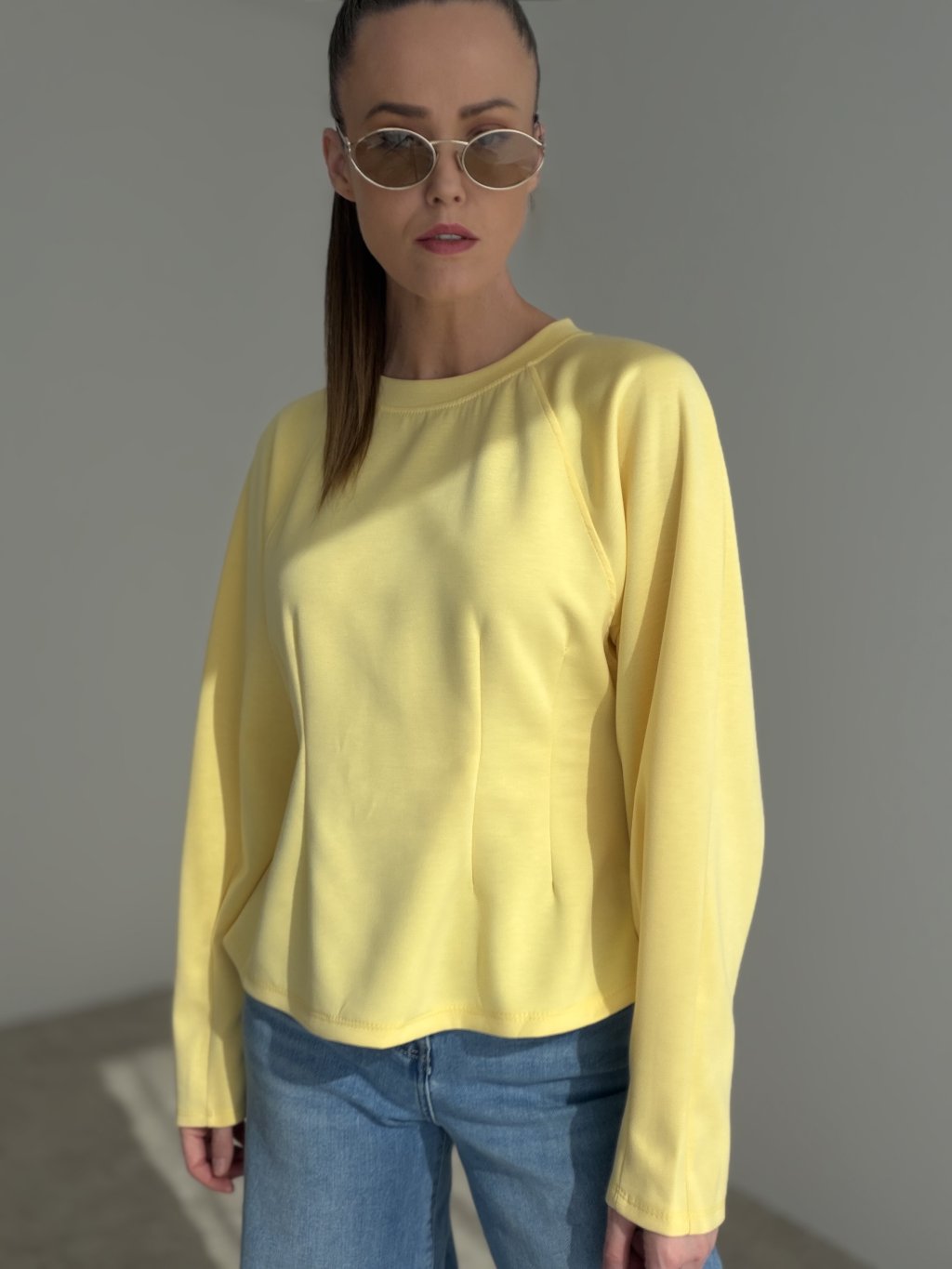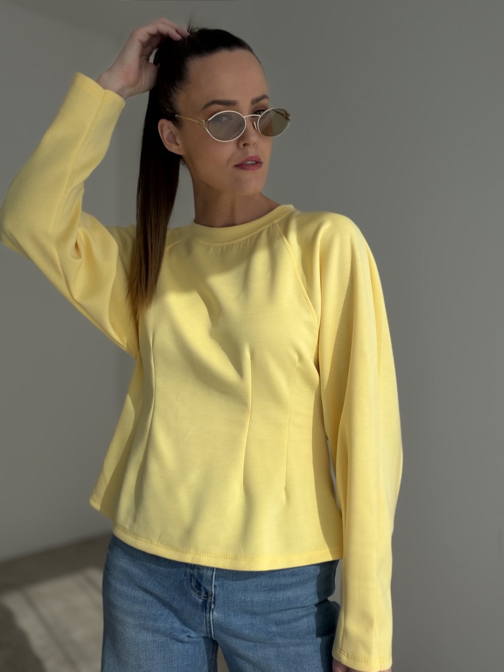 Tvarujúci top s minimalistickým dizajnom a dlhými rukávmi, ktorý jemne zvýrazňuje siluetu. Pohodlný materiál a nadčasový strih z neho robia univerzálny kúsok na každodenné aj elegantné outfity.