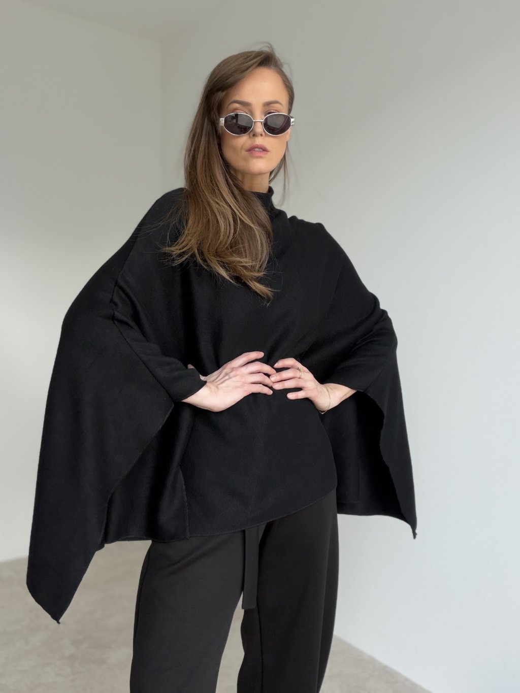 Úpletové pončo s voľnou siluetou, ktoré vytvára elegantný, splývavý efekt a zároveň poskytuje príjemné teplo. Vyšší golier pôsobí čisto a moderne, zatiaľ čo široké prevedenie necháva vyniknúť vrstveniu a pohybu materiálu. Strih je komfortný, neobmedzuje a krásne zjemní celkový outfit – či už ho skombinuješ s nohavicami, sukňou alebo šatami. Pončo je ideálne na prechodné obdobie aj chladnejšie dni, keď chceš vyzerať upravene a zároveň sa cítiť pohodlne.