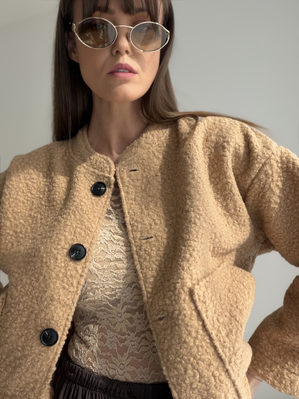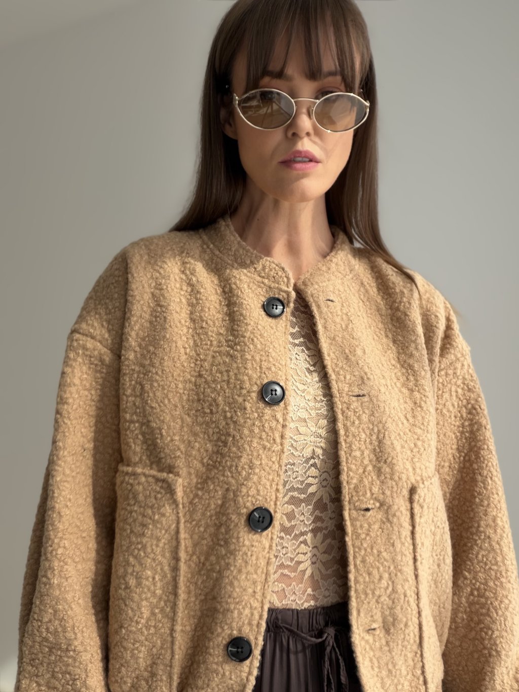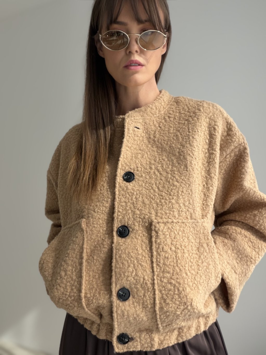 Táto bunda je dokonalou kombináciou moderného štýlu a pohodlia. Mäkký materiál s výraznou štruktúrou dodáva modelu zaujímavý vzhľad a zároveň pôsobí veľmi príjemne pri nosení. Voľnejší strih vytvára ležérnu siluetu, ktorá je ideálna na každodenné mestské outfity.