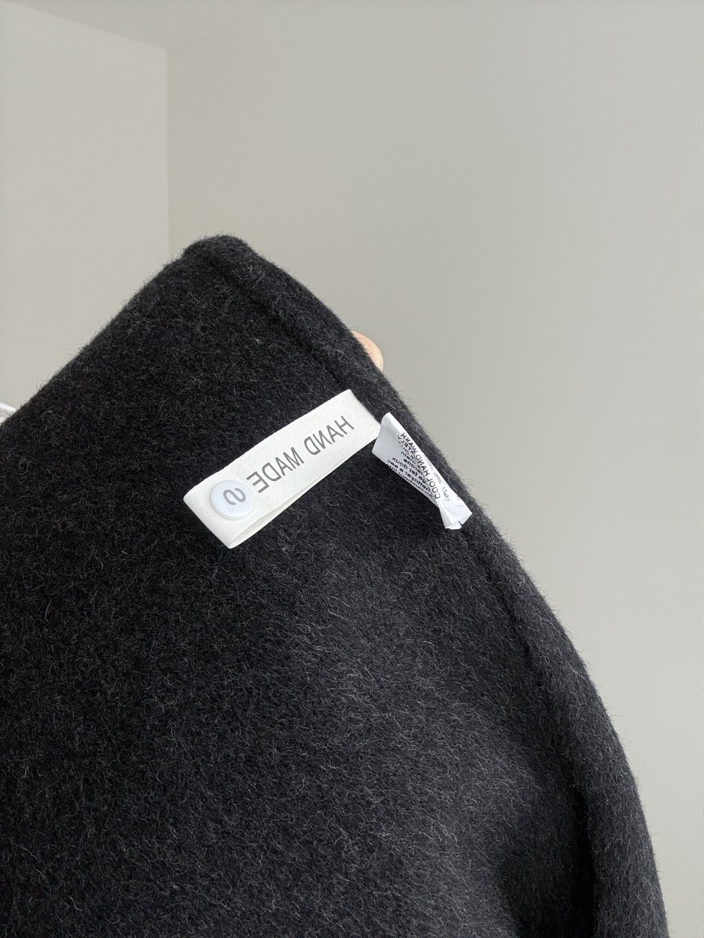 Ručne vyhotovený kabát z príjemného vlneného materiálu pôsobí nadčasovo a elegantne. Dlhší, voľnejší strih krásne padá na postave a ponúka komfort aj pri vrstvení – či už cez košeľu, rolák alebo hrubší pulóver. Klasický golier s klopami dodáva kabátu sofistikovaný vzhľad, vďaka čomu je ideálny do práce, na stretnutia aj na bežné dni, keď chceš vyzerať upravene bez námahy.