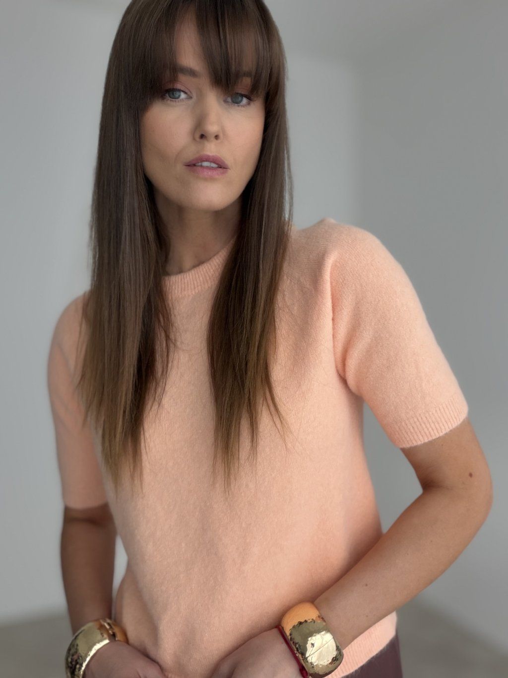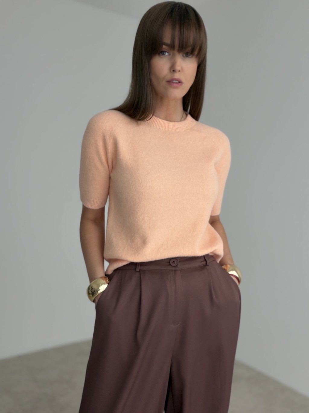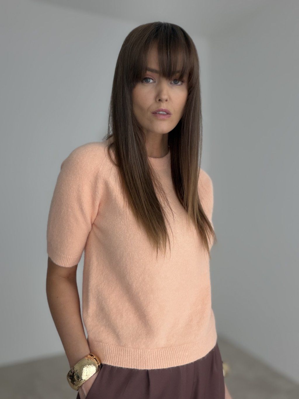 Jemný a elegantný model s krátkym rukávom a čistým strihom, ktorý pôsobí žensky, moderne a veľmi vkusne. Skvelo sa kombinuje do každodenných aj elegantnejších outfitov.