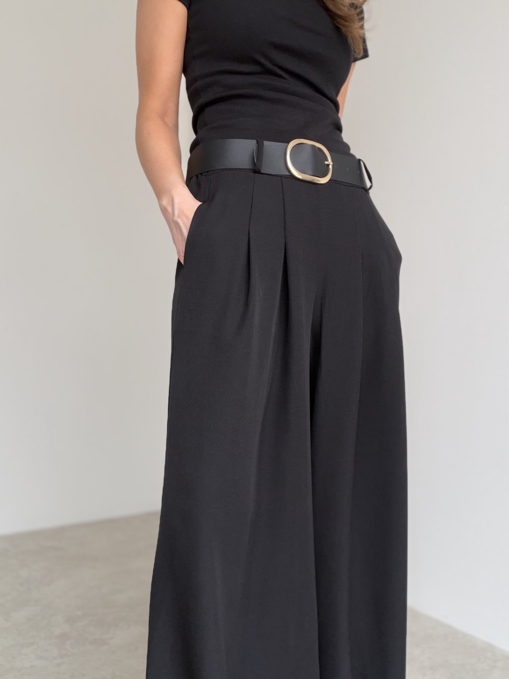 Široké nohavice s elegantným strihom, záhybmi a vreckami, ktoré krásne predĺžia postavu a hodia sa na bežné aj spoločenskejšie nosenie.