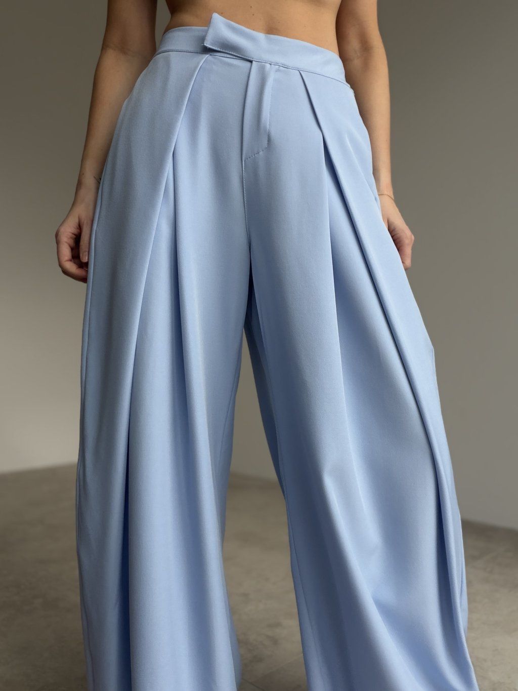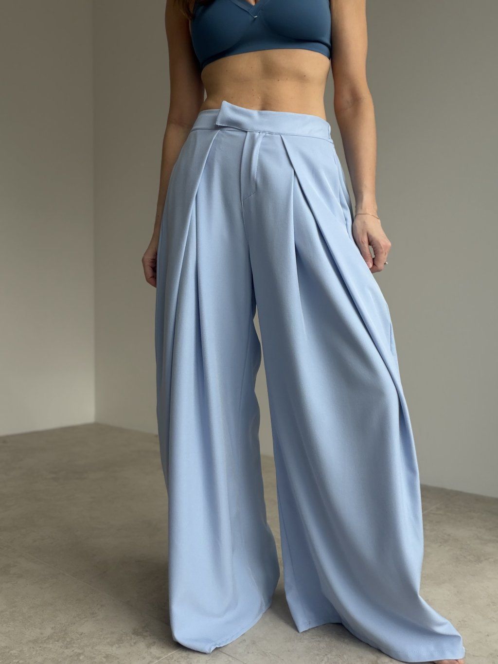 Elegantné široké nohavice s vysokým pásom, ktoré pôsobia upravene a zároveň sú maximálne pohodlné na celodenné nosenie. Predná časť so záhybmi vytvára krásnu siluetu a dodáva outfitu štruktúru, zatiaľ čo zadná časť pásu je riešená pružne, aby sa nohavice príjemne prispôsobili postave. Voľné, široké nohavice splývajú pri chôdzi, opticky predlžujú nohy a ľahko sa kombinujú do pracovných aj voľnočasových outfitov. Stačí zmeniť top a obuv a získaš úplne iný štýl – od minimalistického po elegantný.