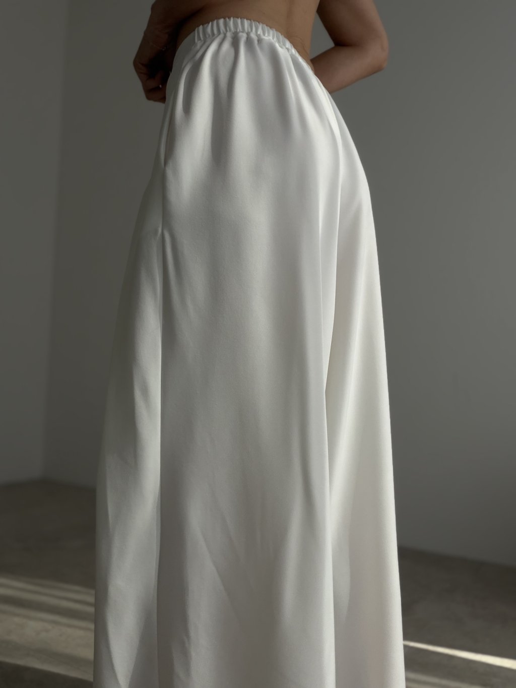 Elegantné wide nohavice so širokým splývavým strihom a gumou v zadnej časti pásu pre pohodlnejšie nosenie. Nadčasový kúsok vhodný na elegantné aj moderné outfity.