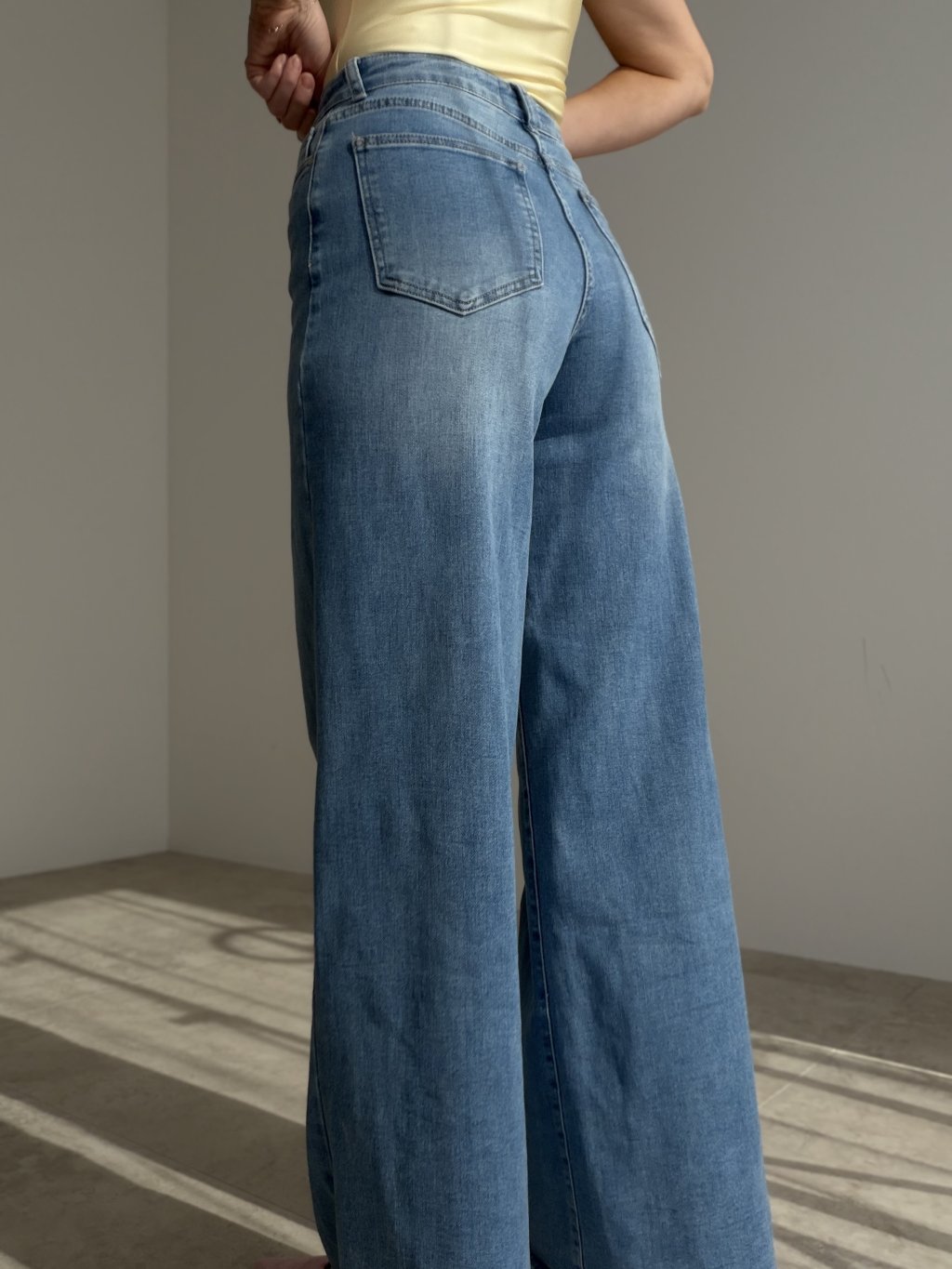 Rifle so širokými nohavicami a vysokým pásom, ktoré opticky predlžujú nohy a zvýrazňujú siluetu. Nadčasový strih a pohodlný denim z nich robia univerzálny kúsok na každodenné aj elegantnejšie outfity.