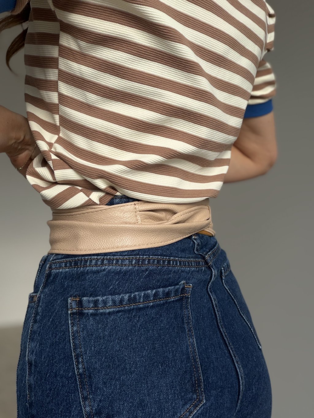 Štýlový zavinovací opasok, ktorý krásne zvýrazní pás a dodá šmrnc každému outfitu. Vďaka širokému strihu a dlhým viazacím šnúrkam sa dokonale prispôsobí postave a umožňuje rôzne spôsoby viazania – na uzol, mašľu či prekríženie. Ideálny k šatám, sukniam aj oversized košeliam.